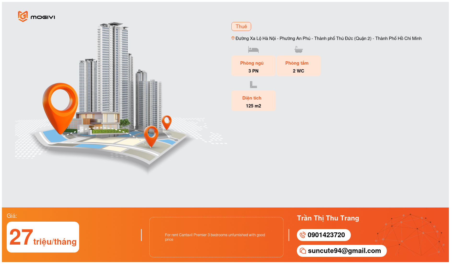 For rent Cantavil Premier 3 bedrooms unfurnished with good price