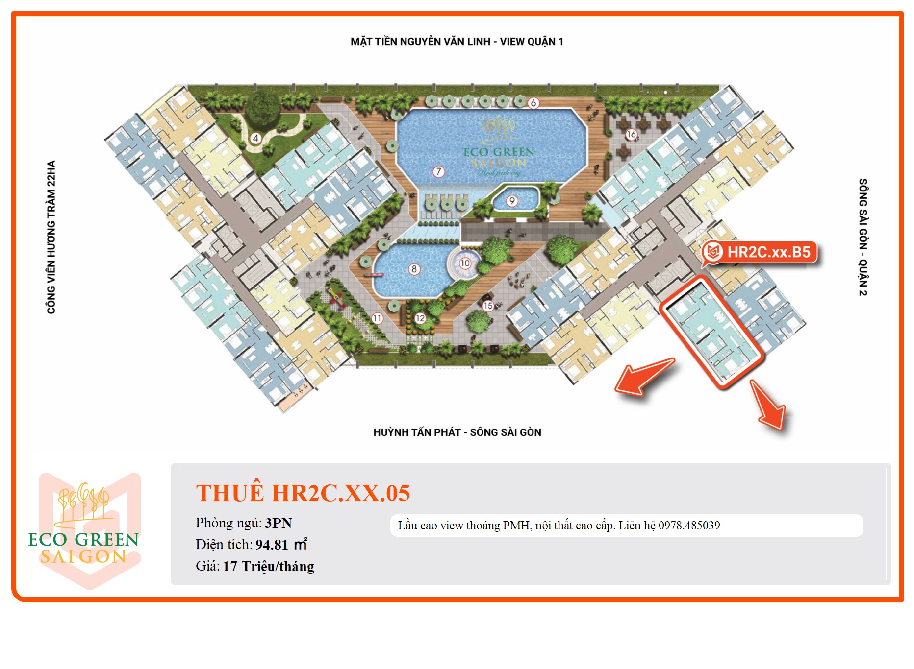 Cho Thuê Căn hộ 3PN Eco Green Sài Gòn