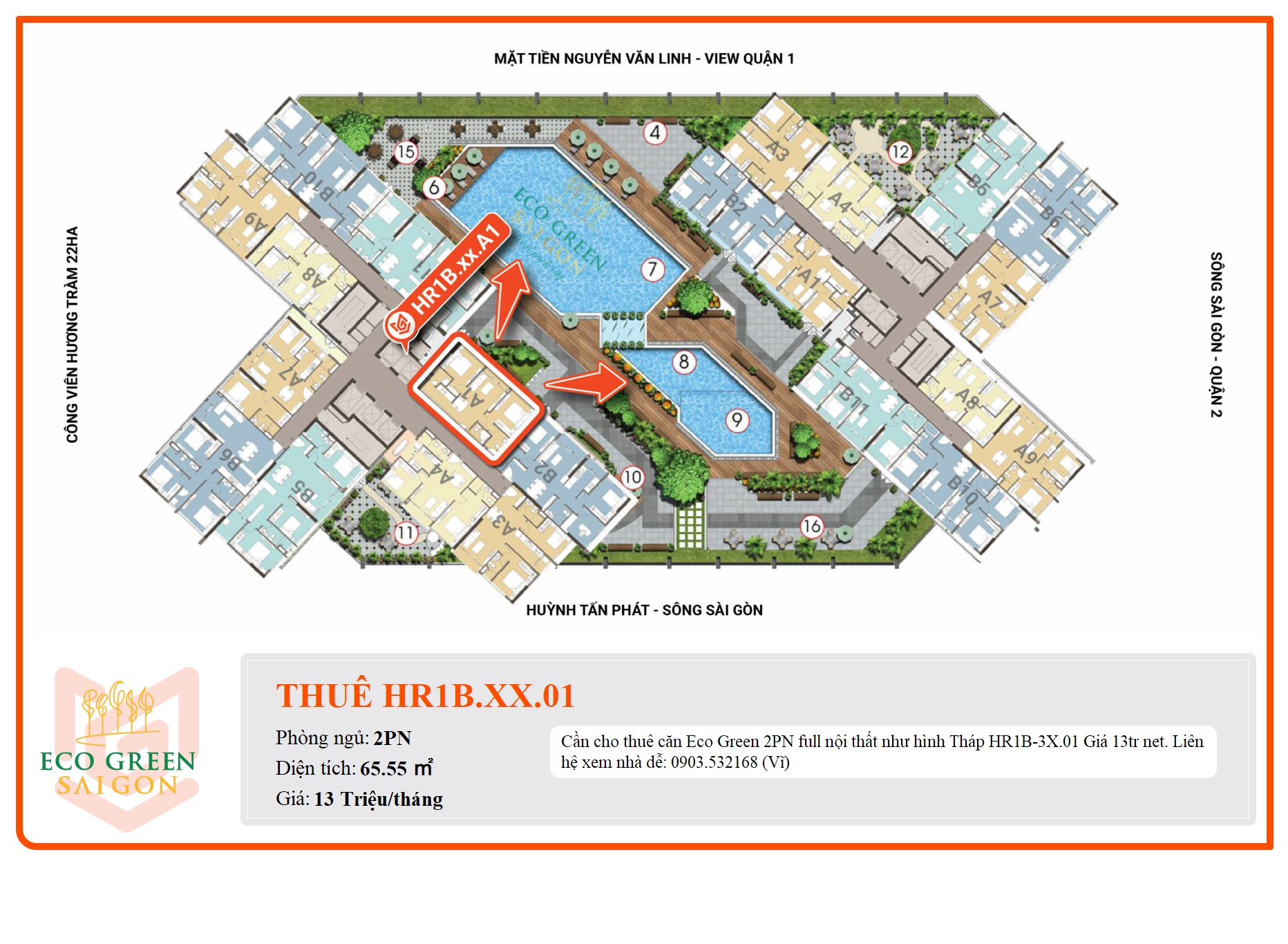 Eco Green Saigon là dự án khu phức hợp Thương mại – Dịch vụ – Khách sạn 5 sao – Căn hộ – Shophouse cao cấp tọa lạc ngay mặt tiền đường Nguyễn Văn Linh, Quận 7 do Xuân Mai Sài Gòn làm chủ đầu tư. Đây cũng là dự án khu phức hợp được quy hoạch quy mô lớn nhất phía Nam Sài Gòn với diện tích hơn 14ha. Dự án khởi công vào quý I/2018.