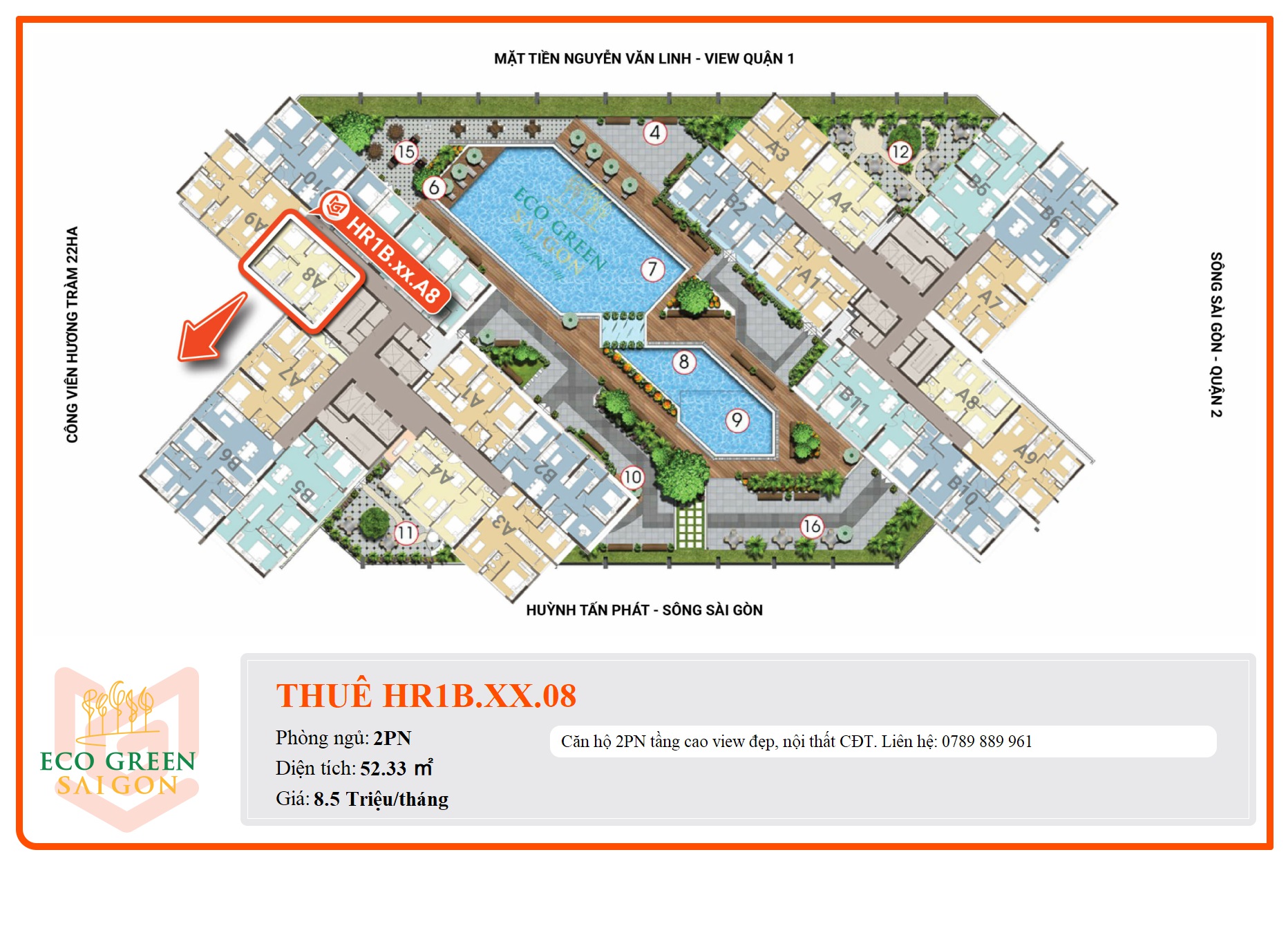 Cho Thuê Căn hộ 2PN Eco Green Sài Gòn