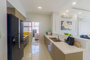 - Các tủ bếp, máy lạnh và máy nước nóng mang tiêu chuẩn quốc tế được lắp đặt tại các căn hộ.