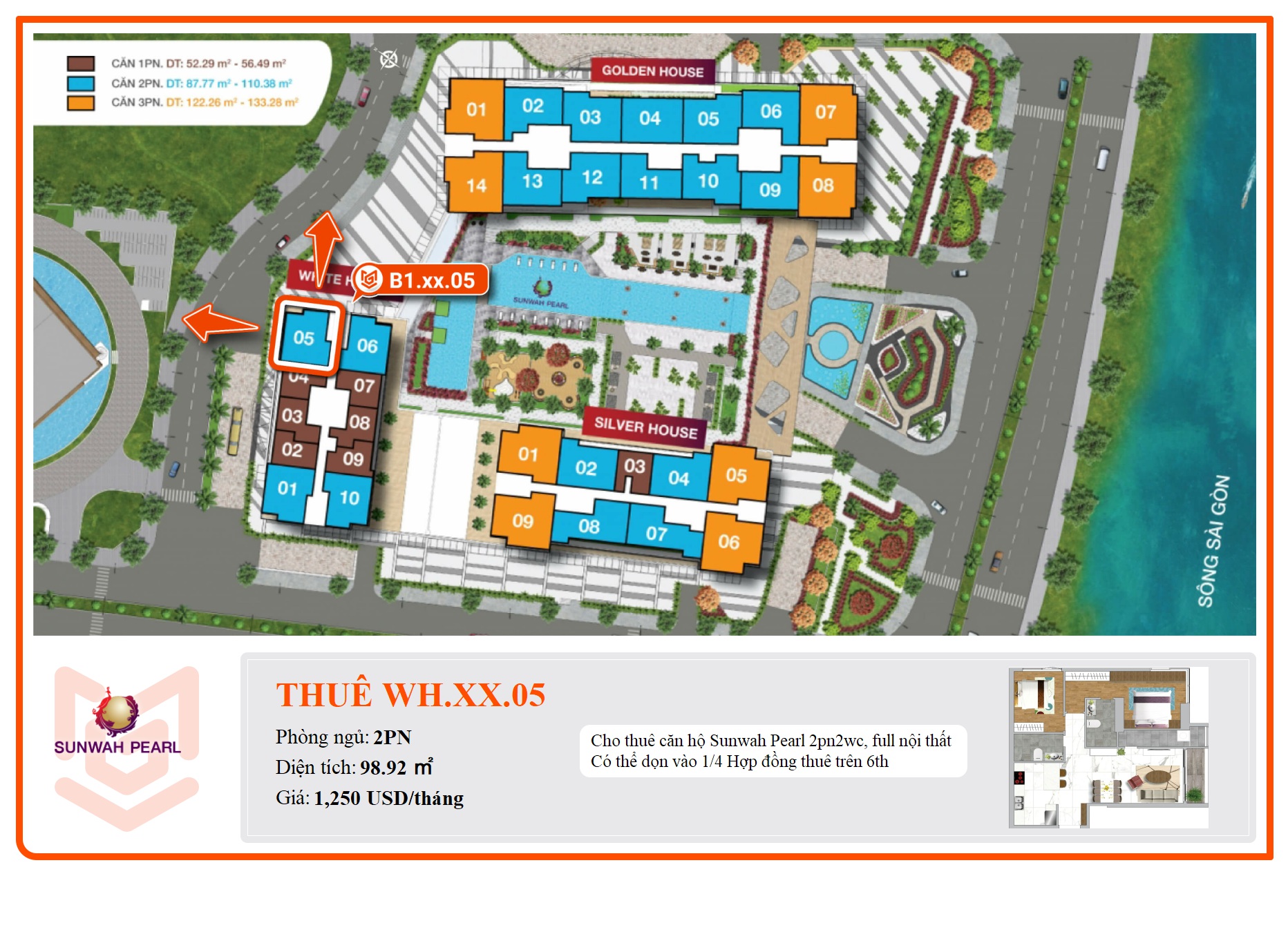 Cho Thuê Căn hộ 2PN Sunwah Pearl