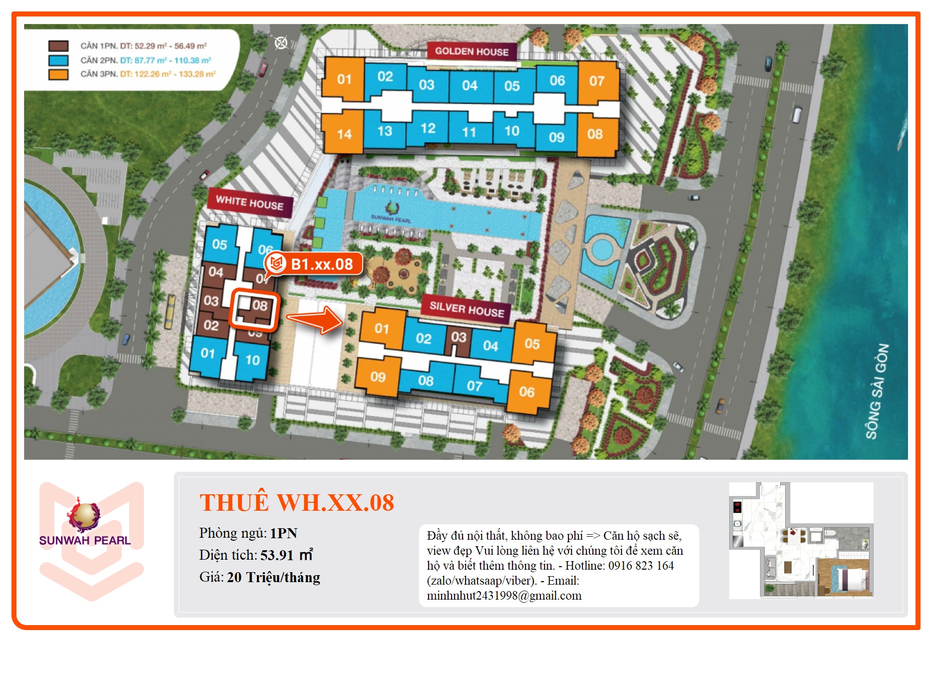Đầy đủ nội thất, không bao phí => Căn hộ sạch sẽ, view đẹp Vui lòng liên hệ với chúng tôi để xem căn hộ và biết thêm thông tin. - Hotline: 0916 823 164 (zalo/whatsaap/viber). - Email: minhnhut2431998@gmail.com