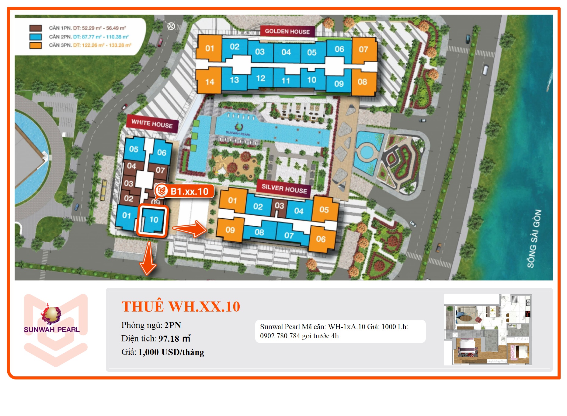 Cho Thuê Căn hộ 2PN Sunwah Pearl
