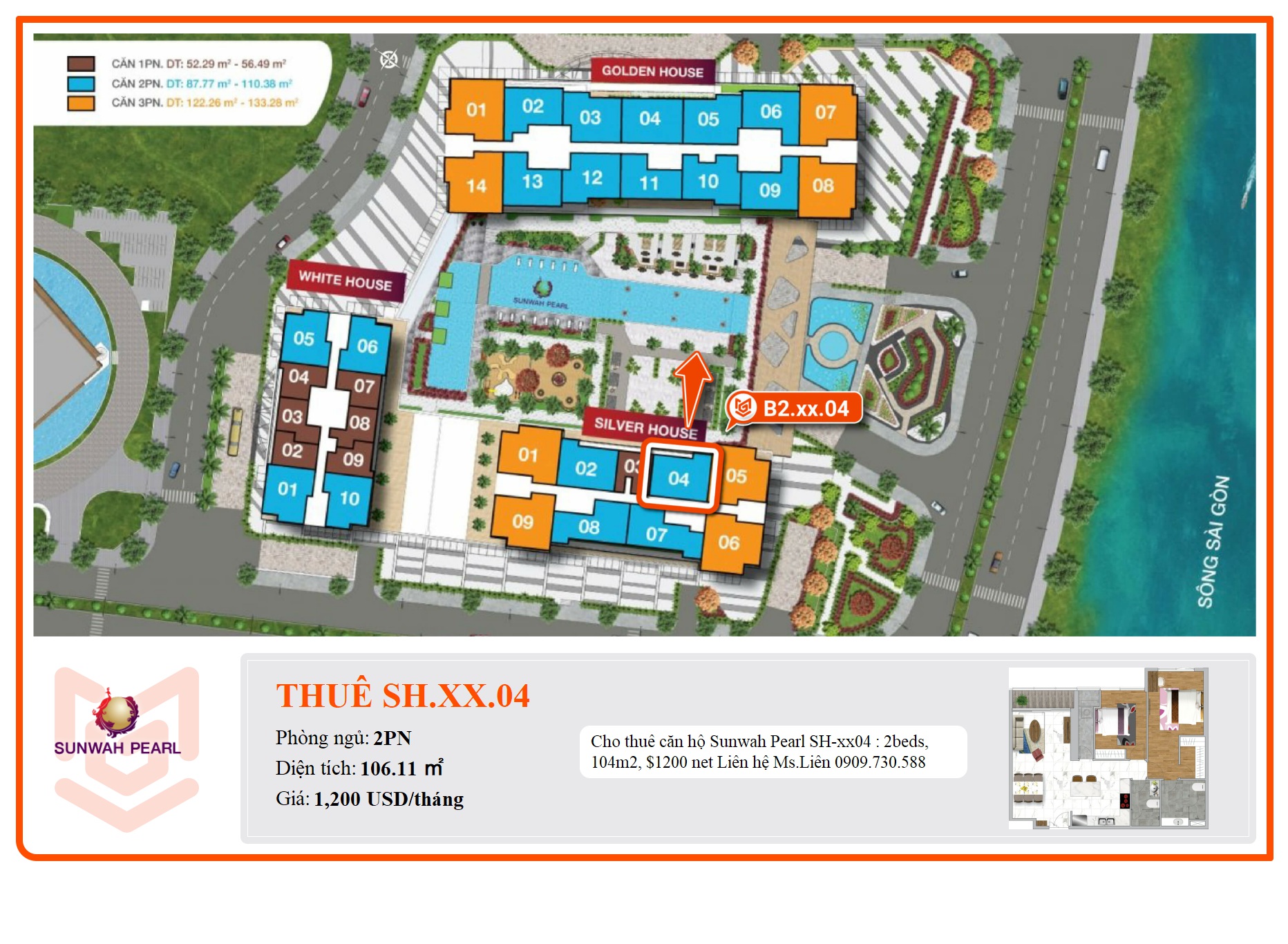 SH-xx04 : 2beds, 104m2, $1200 net