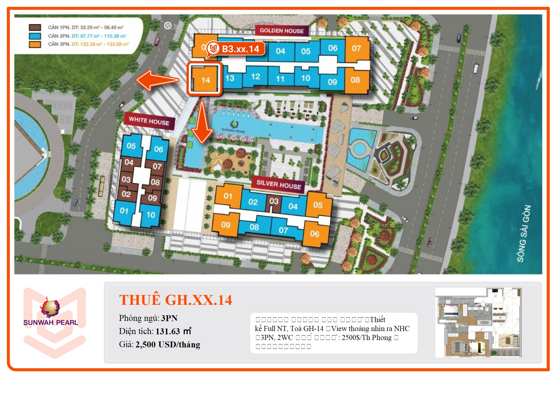Cho Thuê Căn hộ 3PN Sunwah Pearl