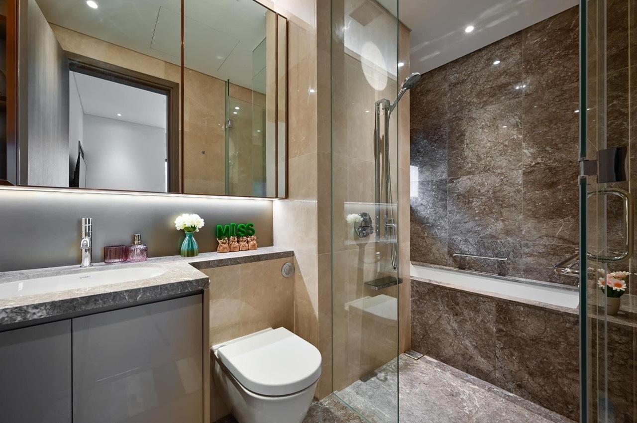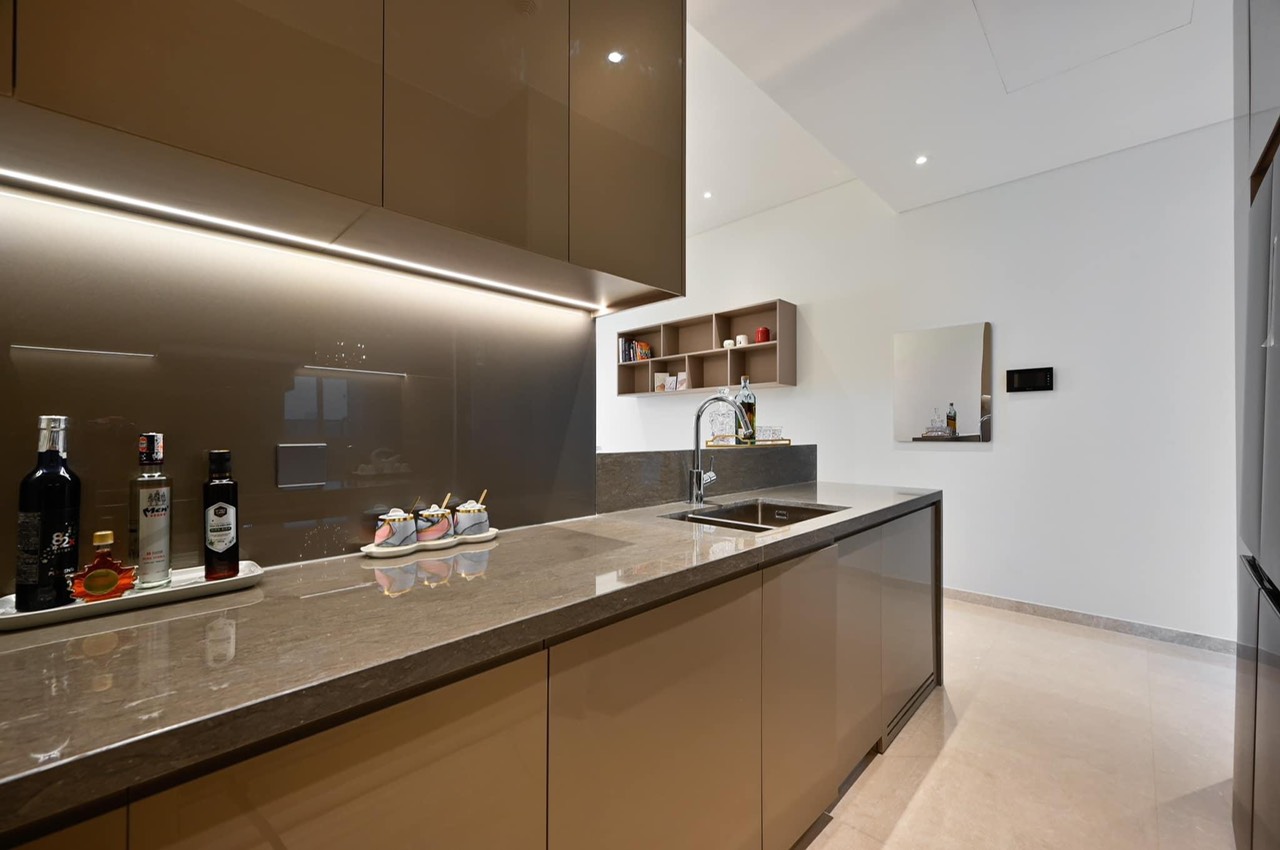 Thiết kế sang trọng, nội thất thể hiện sự sang trọng ở các chi tiết đắt giá như trần nhà cao, khung cửa sổ lớn, những tấm đá cẩm thạch lắp đặt tỉ mỉ trên mặt quầy bếp, sàn nhà, sàn và tường phòng tắm.