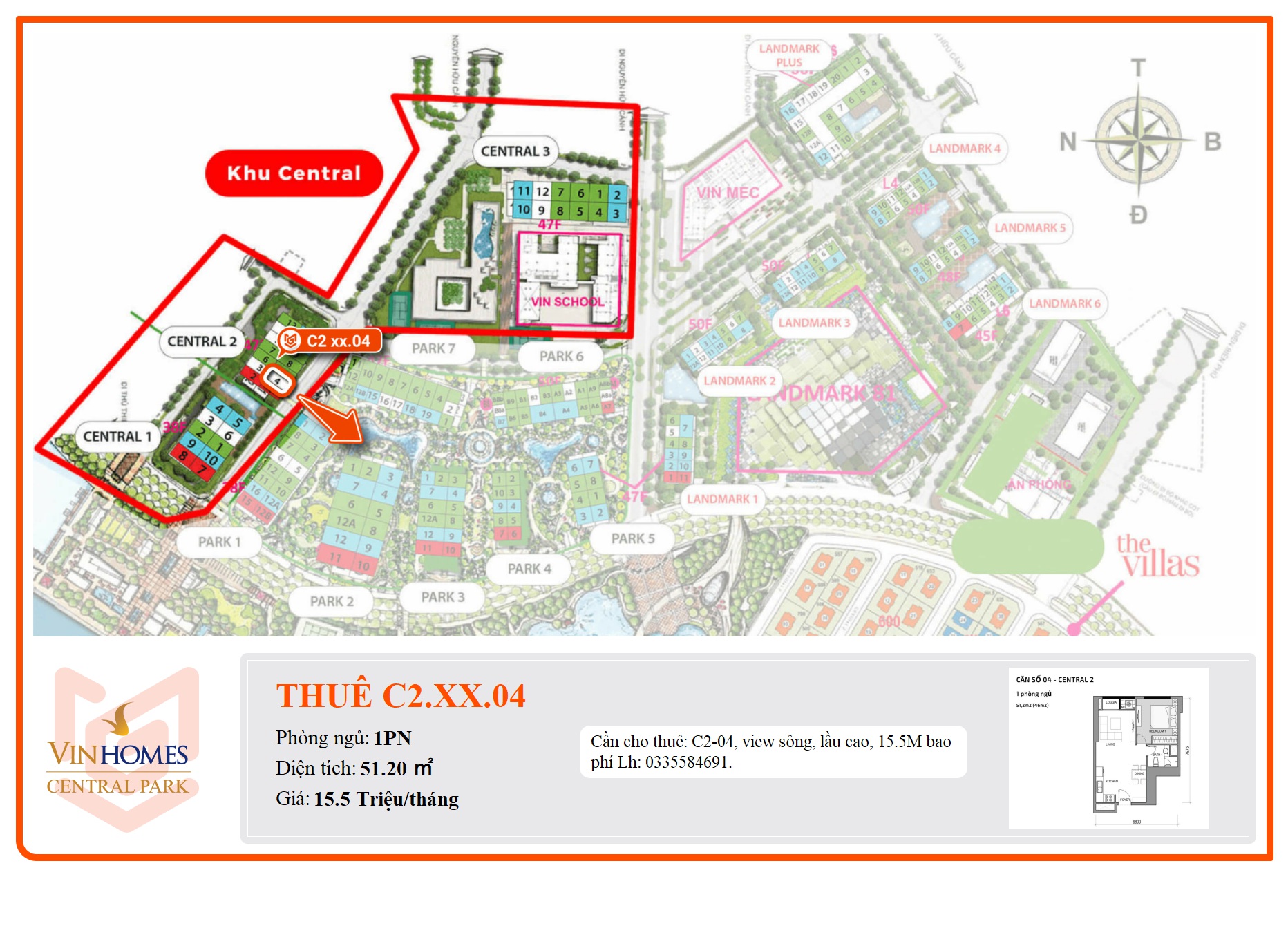 Cho Thuê Căn hộ 1PN Vinhomes Central Park