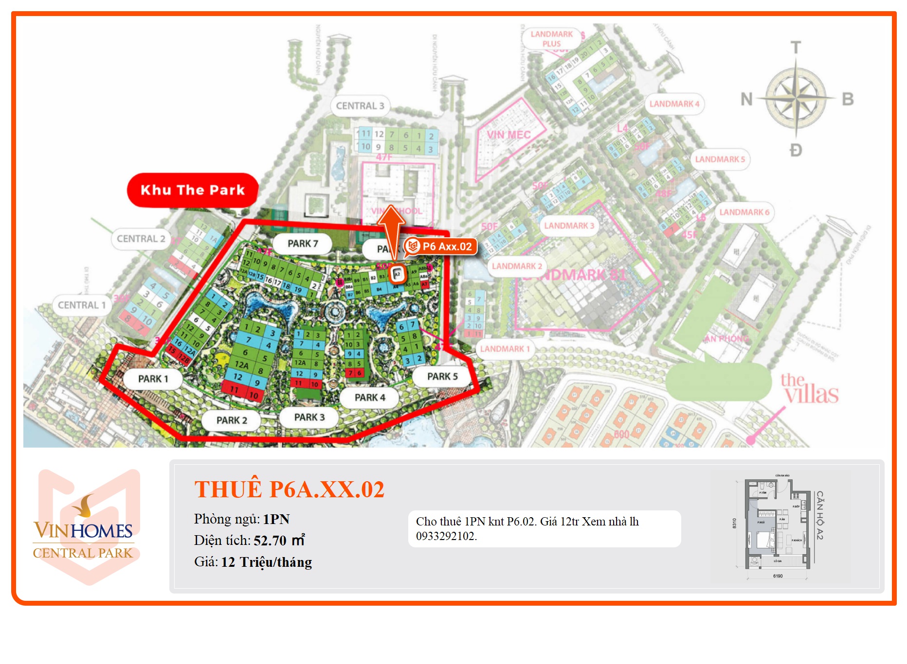 Cho thuê 1PN knt P6.02. Giá 12tr