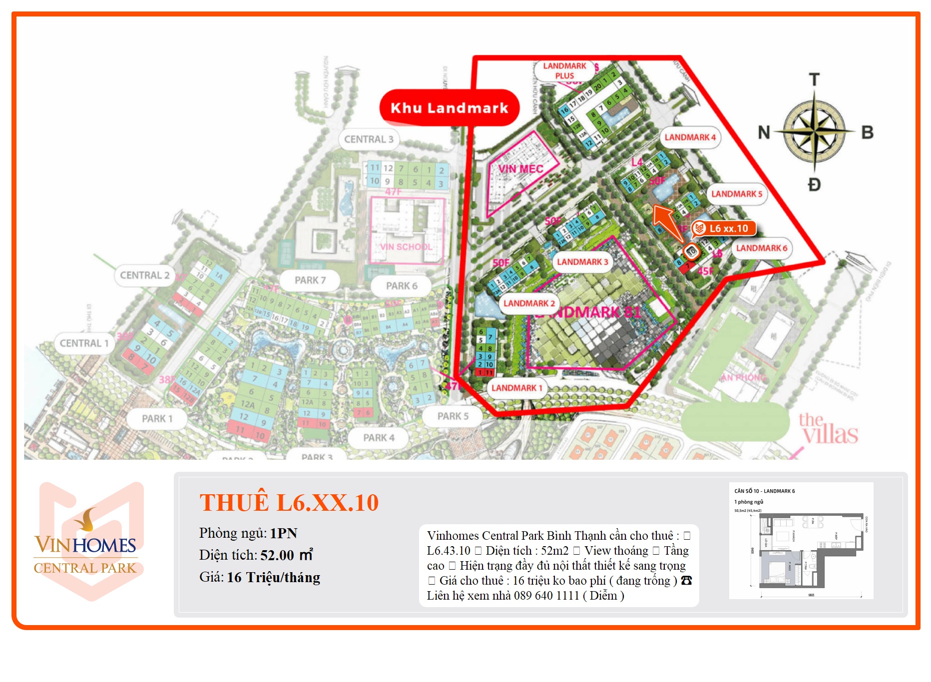 Vinhomes Central Park Bình Thạnh cần cho thuê :