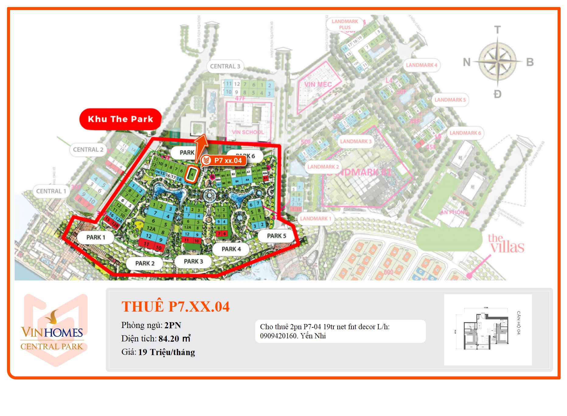 Cho Thuê Căn hộ 2PN Vinhomes Central Park