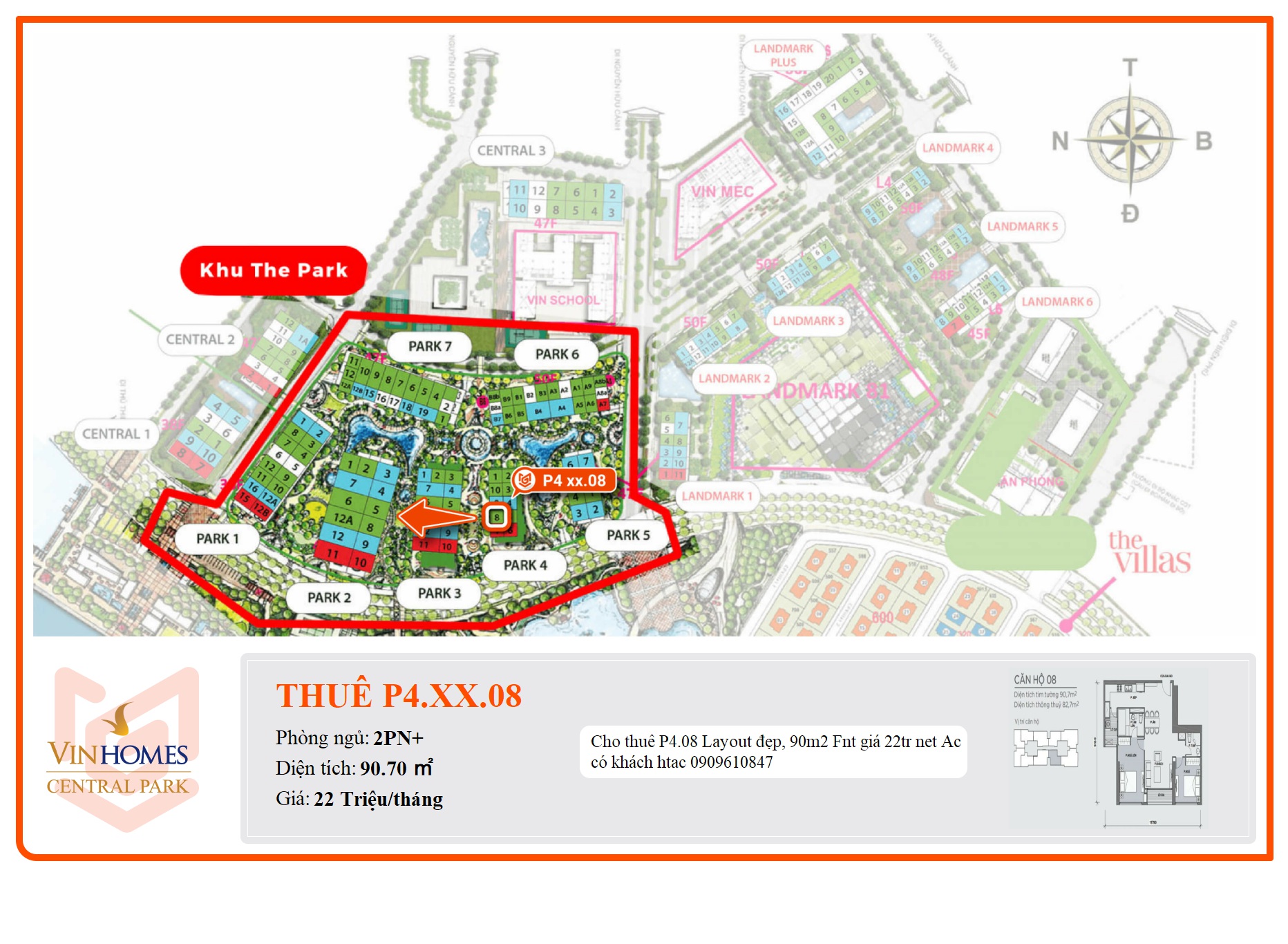 Cho Thuê Căn hộ 2PN+ Vinhomes Central Park