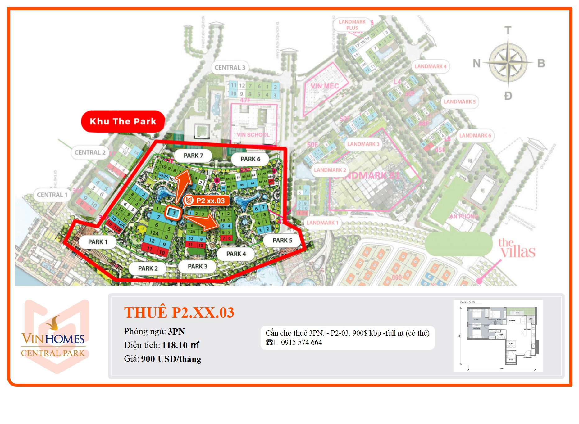 Cho Thuê Căn hộ 3PN Vinhomes Central Park