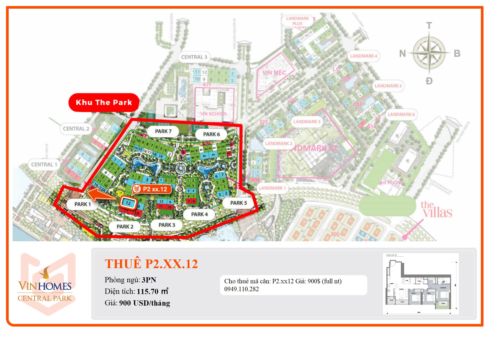 Cho thuê mã căn: P2.xx12