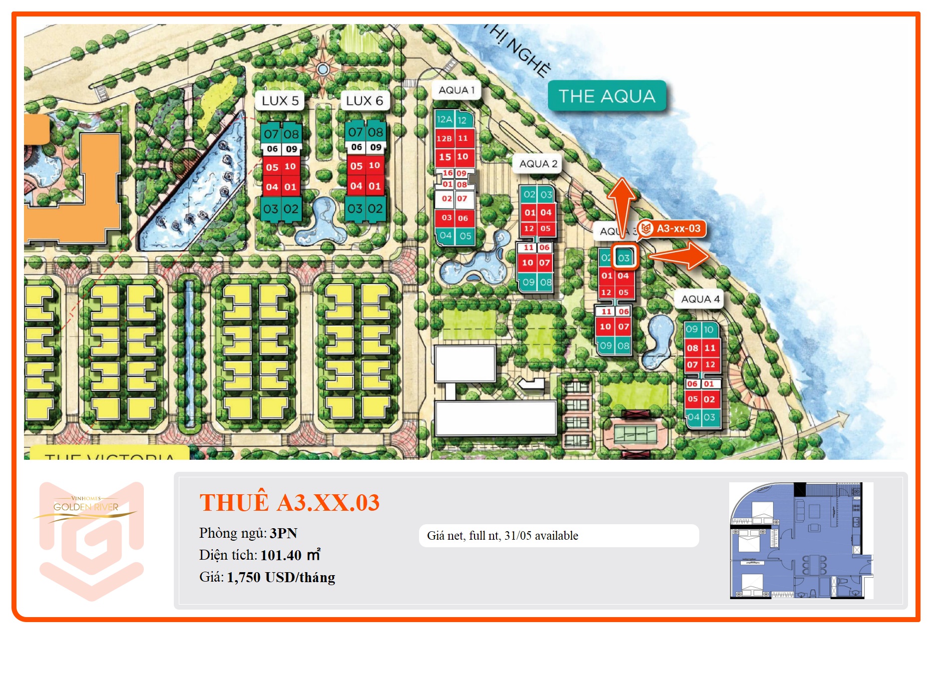 Cho Thuê Căn hộ 3PN Vinhomes Golden River