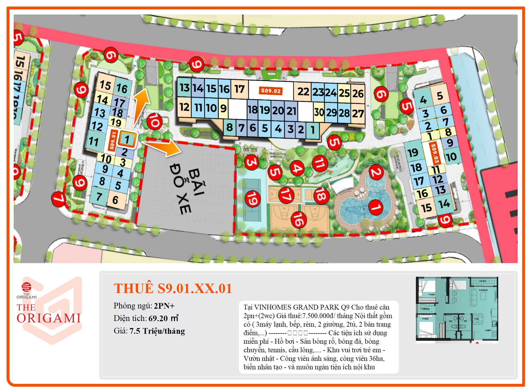 - Các tiện ích nội khu nổi bật tại The Origami như: