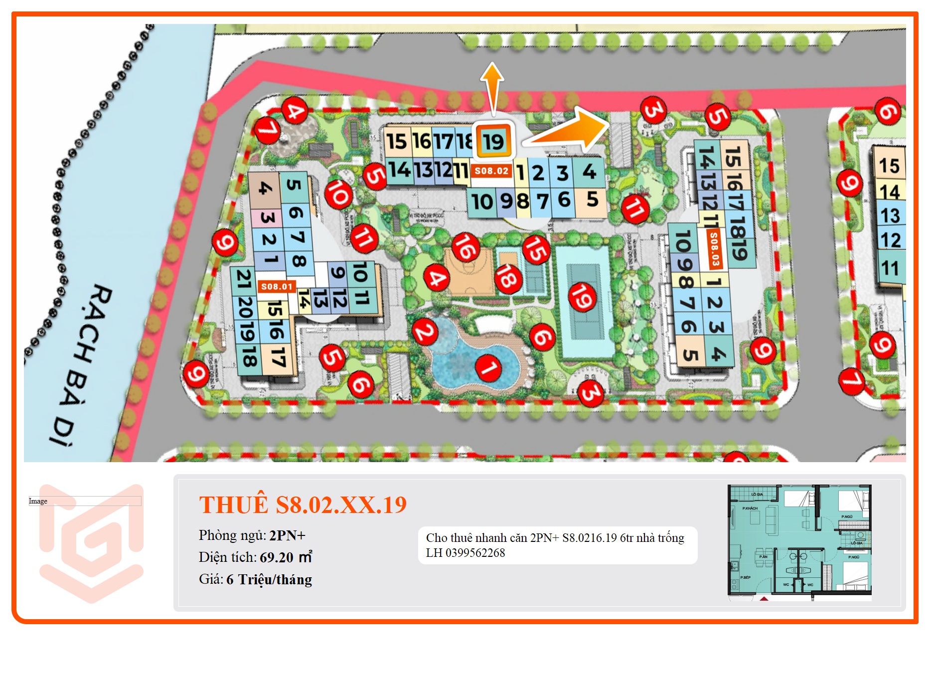 Cho thuê nhanh căn 2PN+ S8.0216.19 6tr nhà trống