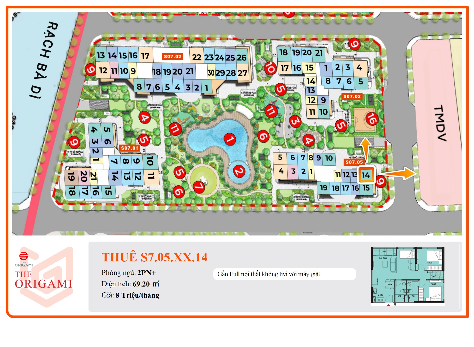 Cho Thuê Căn hộ 2PN+ Vinhomes Grand Park - The Origami
