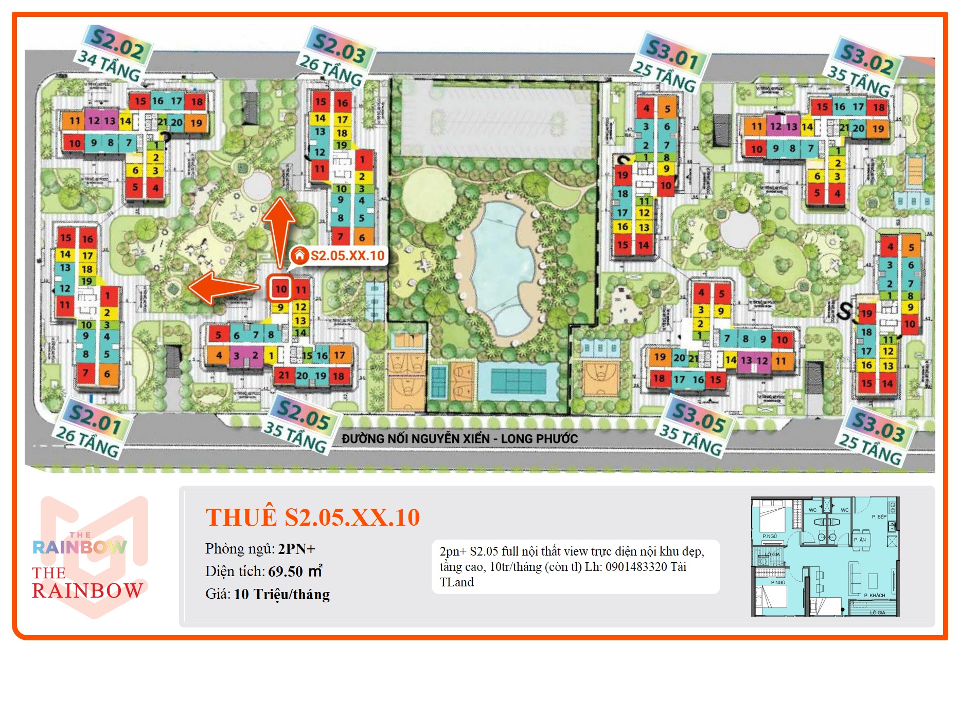 Phân khu The Rainbow có vị trí nằm ngay tại mặt tiền đường Nguyễn Xiển – phường Long Thạnh Mỹ – Quận 9 với quy mô 17 tòa tháp có chiều cao từ 25 – 35 tầng. Tổng số lượng căn hộ tại phân khu cung cấp cho thị trường 10,359 thuộc dòng sản phẩm Sapphire của thương hiệu Vinhomes. Các sản phẩm căn hộ tại nơi đây được thừa hưởng trọn vẹn môi trường sống ưu việt, trọn vẹn từ quy hoạch đồng bộ và sự quản lý vận hành thông minh. Các tòa tháp của phân khu được phân bổ, bố trí số lượng căn hộ như sau: