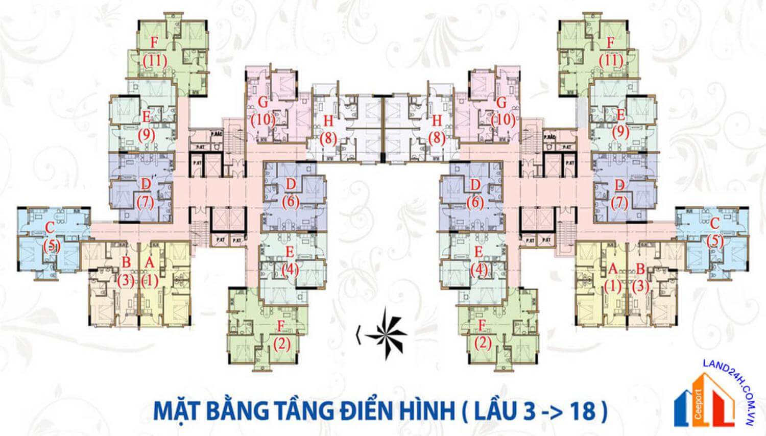 - Diện tích: 50m² - 66m² - 68m² - 72m² - 82m²