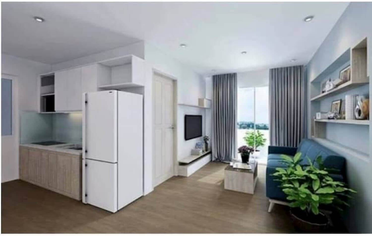 - Căn 2 phòng ngủ: Diện tích phổ biến từ 59m² - 60m².