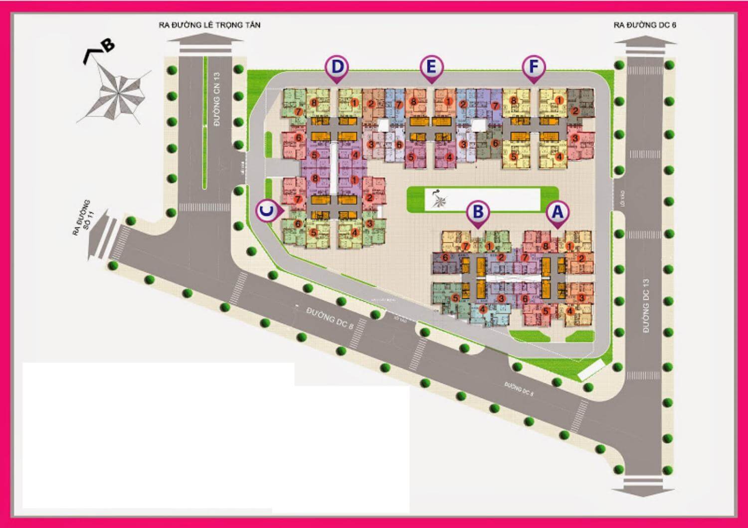 Tổng số block: Gồm 6 block nhà, cao 11 tầng nổi và có 1 tầng hầm giữ xe