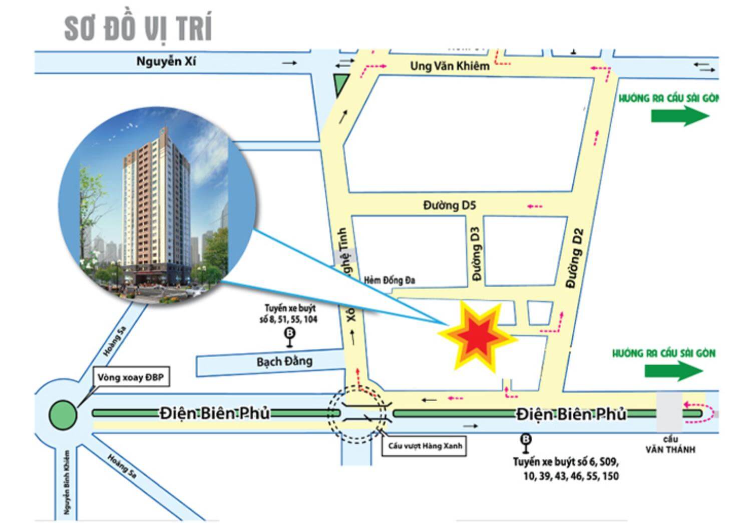 Từ dự án, cư dân dễ dàng kết nối đến trung tâm qua các tuyến đường Điện Biên Phủ, Xô Viết Nghệ Tĩnh. Đặc biệt, theo Gia Thuê Căn Hộ, vị trí này chỉ cách trạm Metro Tân Cảng và khu du lịch Văn Thánh vài phút di chuyển.