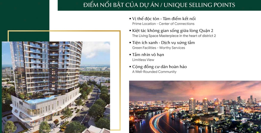 Căn hộ Thảo Điền Green Towers Quận 2 là một dự án hiện đại, sang trọng tọa lạc tại vị trí đẹp và được đánh giá cao với khả năng sinh lợi nhuận. Như chúng ta đã biết quỹ đất khu Thảo Điền Quận 2 gần như cạn kiệt, Thảo Điền cũng là nơi quy tụ lượng lớn cư dân nằm trong giới tri thức giàu có, tầng lớp dân trí cao, cộng đồng cư dân đẳng cấp văn minh, kinh doanh lớn, chủ yếu là giới trung và thượng lưu, hầu hết họ là doanh nhân lớn, các doanh nhân, chuyên gia nước ngoài đến đây sinh sống, một nơi được đánh giá đẳng cấp nhất Sài Gòn. Chọn lựa Thảo Điền Green bạn có thể thay đổi hoàn toàn cuộc sống của mình, có nhiều cơ hội gặp gỡ, giao lưu, kết giao thêm bạn bè là những người cùng “đẳng cấp” với mình, ngoài ra có thể là đối tác làm ăn tiềm năng. Không chỉ làm quen được với cư dân văn minh đẳng cấp giàu có, đa văn hoá, đa ngôn ngữ, mà còn là kiến tạo một môi trường sống xanh, sạch, hiện đại. Sở hữu vị trí đắt giá hiếm hoi còn sót lại của khu nhà giàu, từ dự án cư dân có thể nhanh chóng kết nối ra Xa lộ Hà Nội, đại lộ Mai Chí Thọ, có tốc Long Thành – Dầu Giây…tương lai là gần tuyến Metro Bến Thành – Suối Tiên.