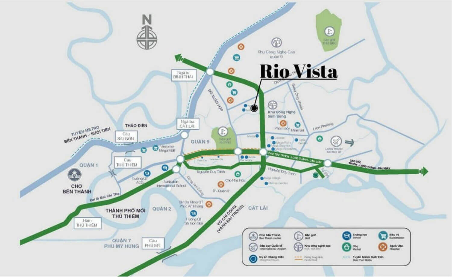 Vị trí địa chỉ dự án Rio Vista tọa lạc tại đường Dương Đình Hội, Phường Phước Long B, Quận 9, Tp.Hồ Chí Minh. Đây là vị trí chiến lược ngay trung tâm kết nối của khu Đông.