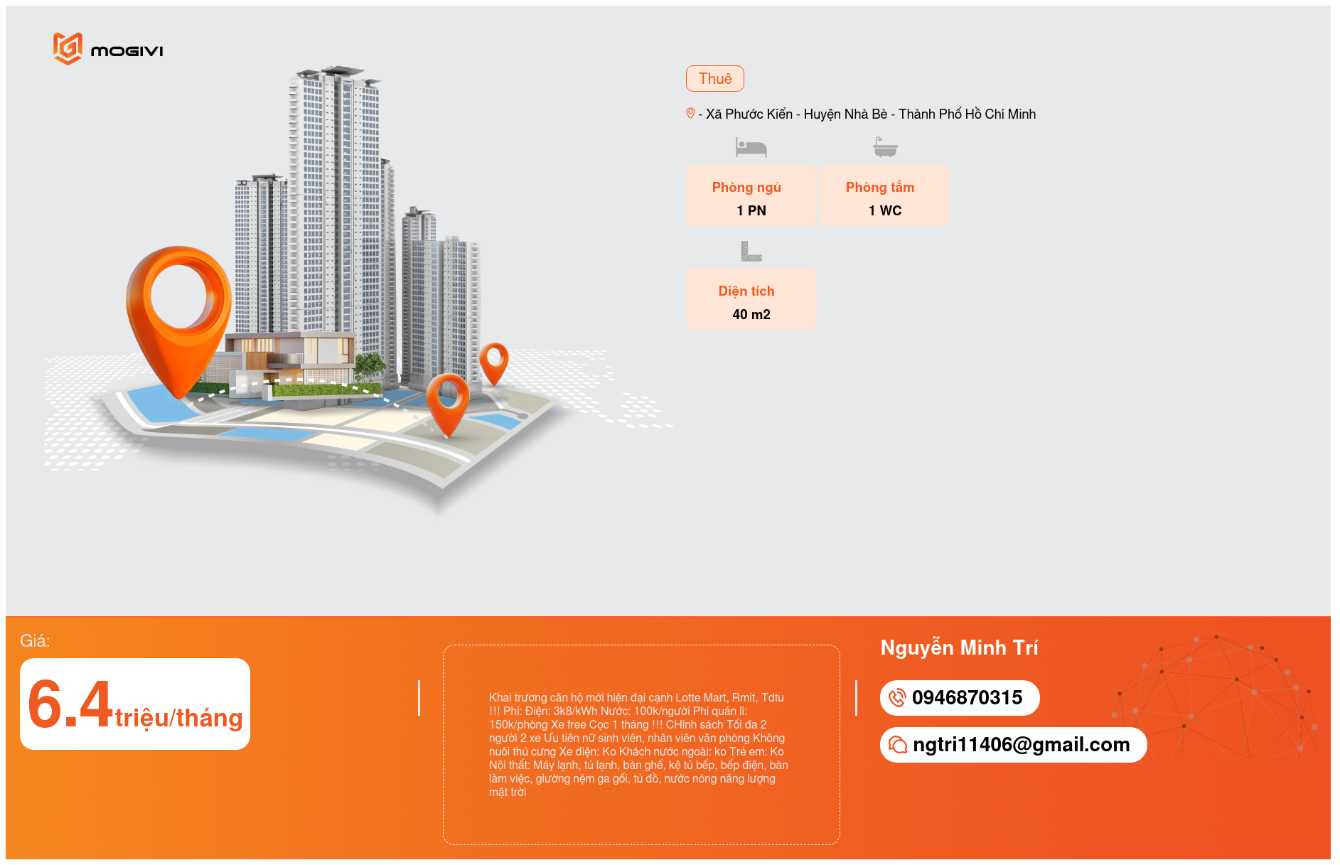 Khai trương căn hộ mới hiện đại cạnh Lotte Mart, Rmit, Tdtu !!! Phí: Điện: 3k8/kWh Nước: 100k/người Phí quản lí: 150k/phòng Xe free Cọc 1 tháng !!! CHính sách Tối đa 2 người 2 xe Ưu tiên nữ sinh viên, nhân viên văn phòng Không nuôi thú cưng Xe điện: Ko Khách nước ngoài: ko Trẻ em: Ko Nội thất: Máy lạnh, tủ lạnh, bàn ghế, kệ tủ bếp, bếp điện, bàn làm việc, giường nệm ga gối, tủ đồ, nước nóng năng lượng mặt trời