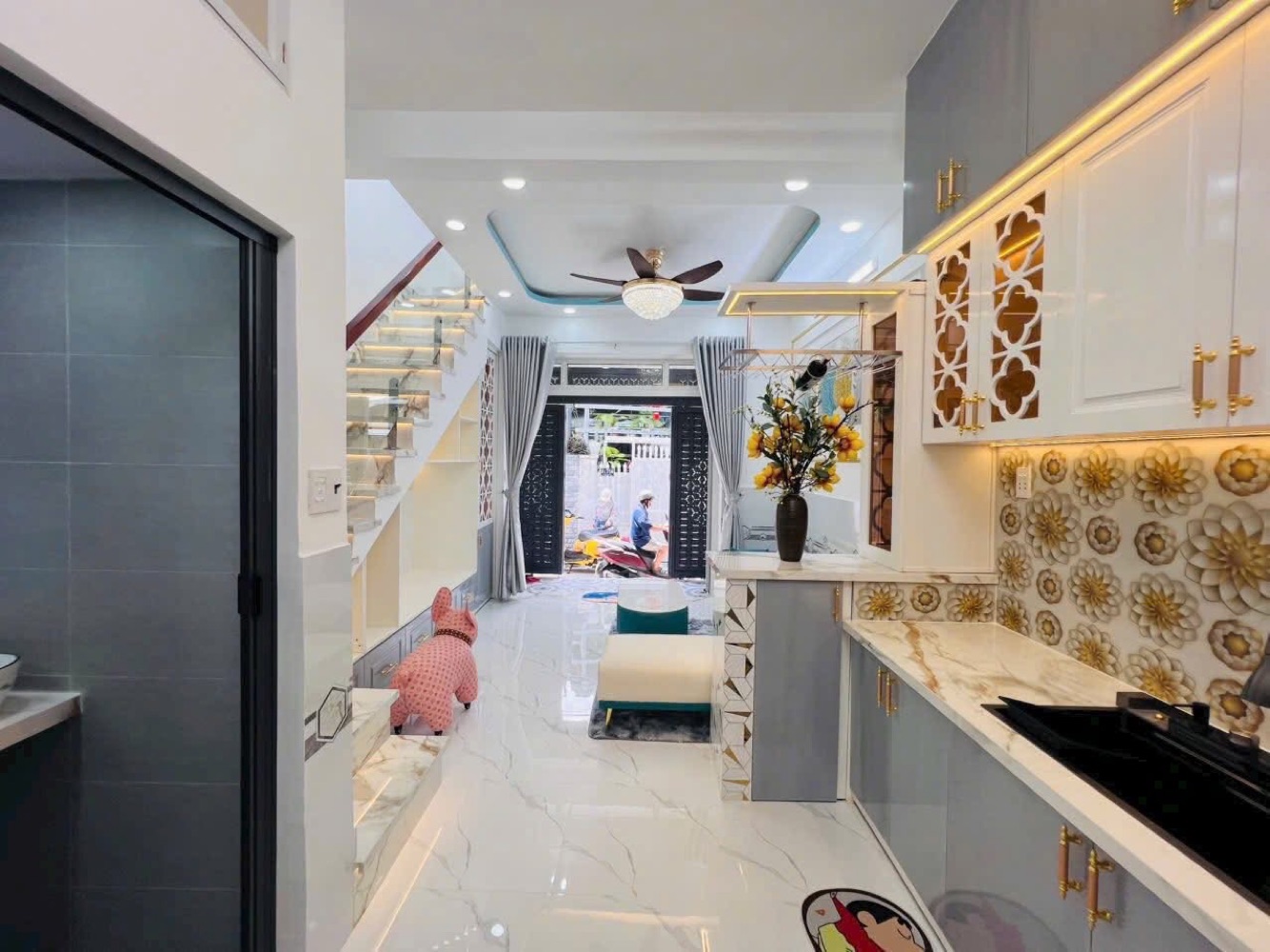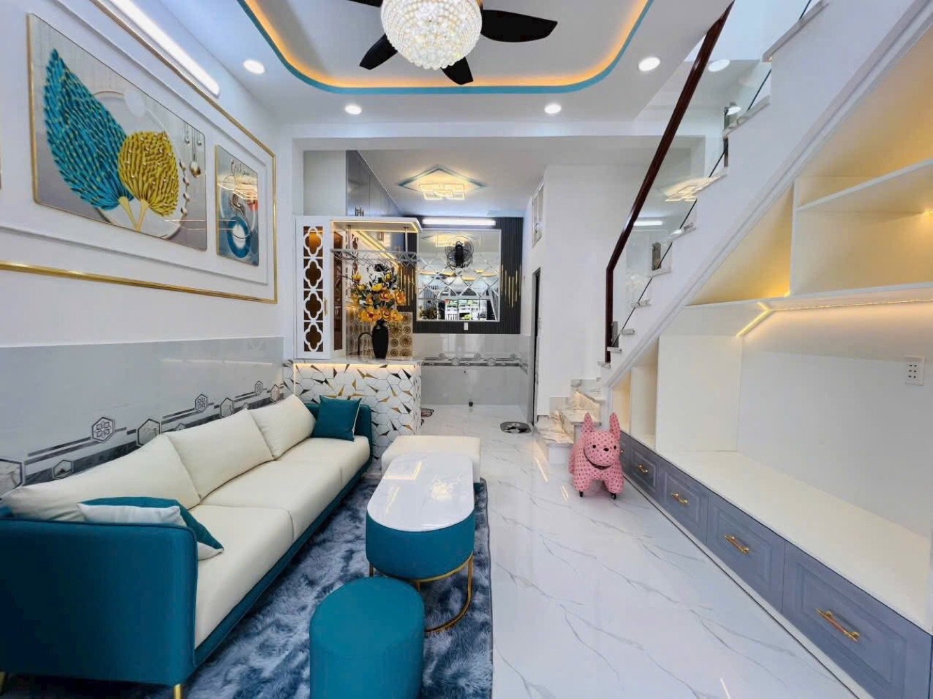 Kết cấu: 1 trệt - 1 lầu - 2 phòng ngủ - 2 vệ sinh - phòng khách - phòng bếp - bancon. - Khu dân cư an ninh, yên tĩnh. Hàng xóm vui vẻ, hoà đồng. - Full nội thất cao cấp như hình: sofa, máy lanh, tủ bếp 2 tầng, kệ tivi.....