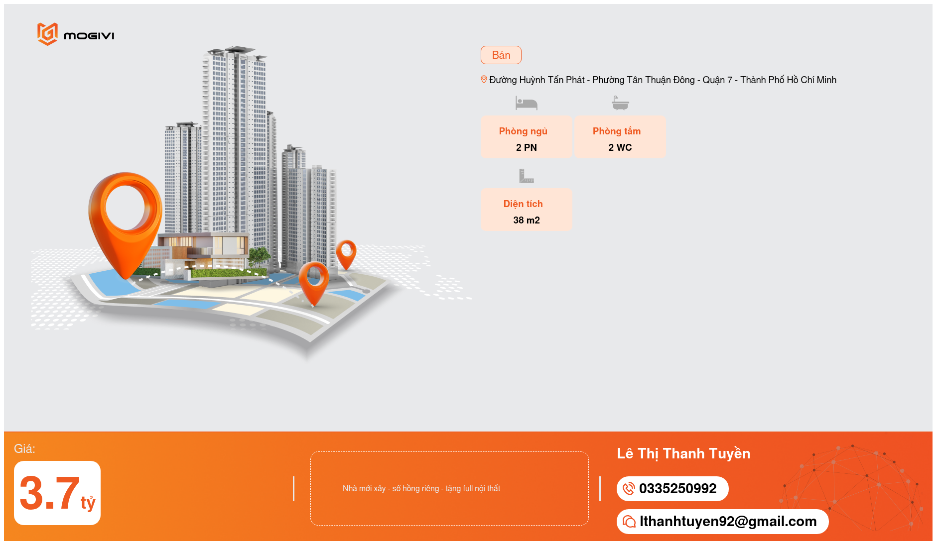 - DT 3m × 11m. Sổ CN 38m