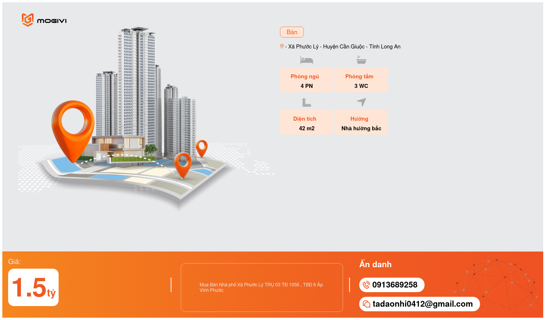 Bán Nhà phố Xã Phước Lý TRỤ 03 TĐ 1056 , TBĐ 6 Áp Vĩnh Phước
