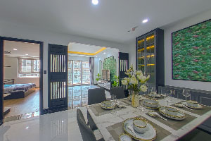 - Thiết kế: Căn hộ Quận 7 Cosmo City được thiết kế theo phong cách Á - Âu, các chi tiết như: đá, cột, đá lót đường, ngoại thất được làm từ các chất liệu cao cấp như: sơn gai đá, ốp alu, đá granite…