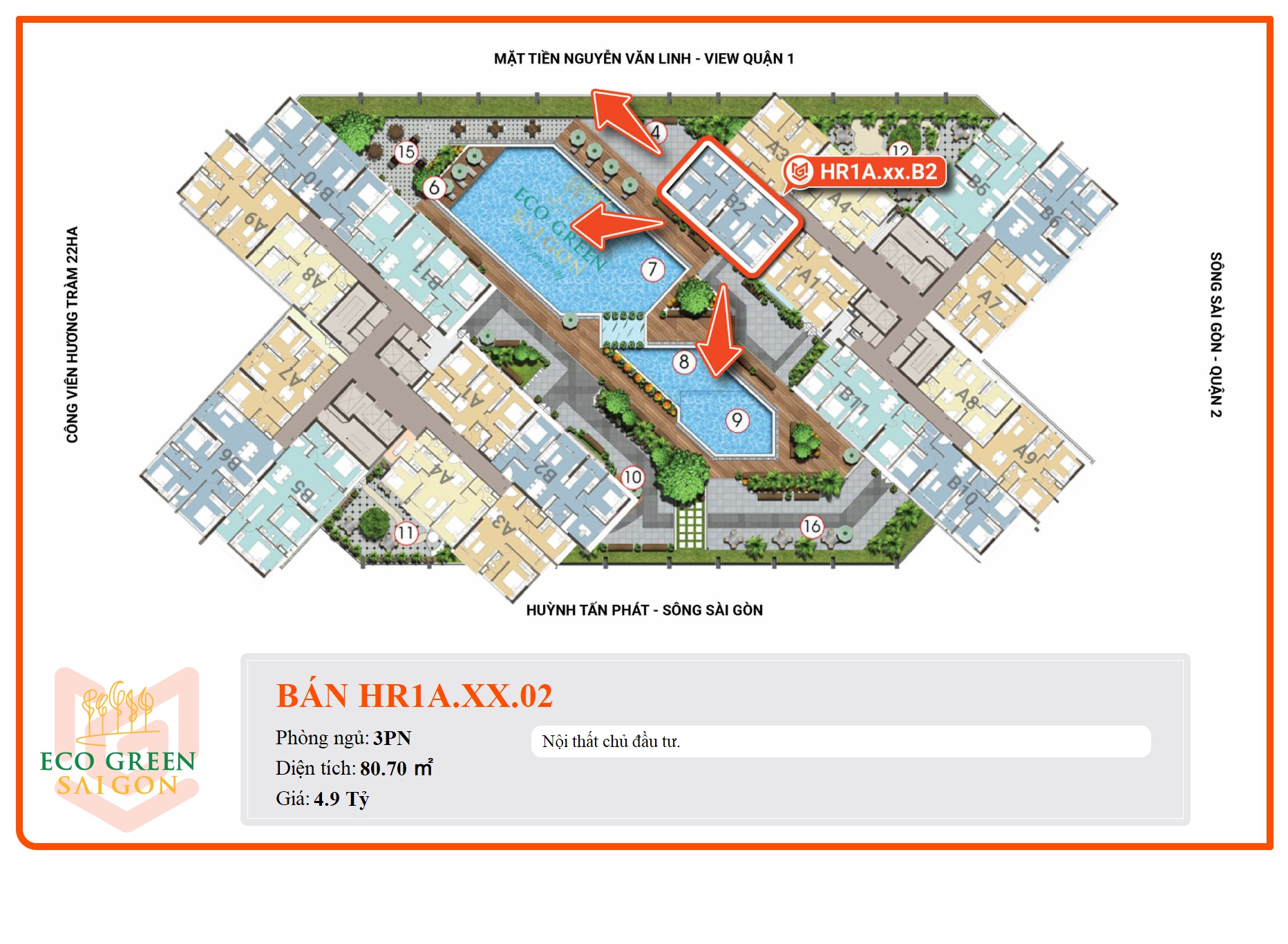 - Quy mô: 14.36 ha gồm 7 tháp căn hộ cao 36 tầng