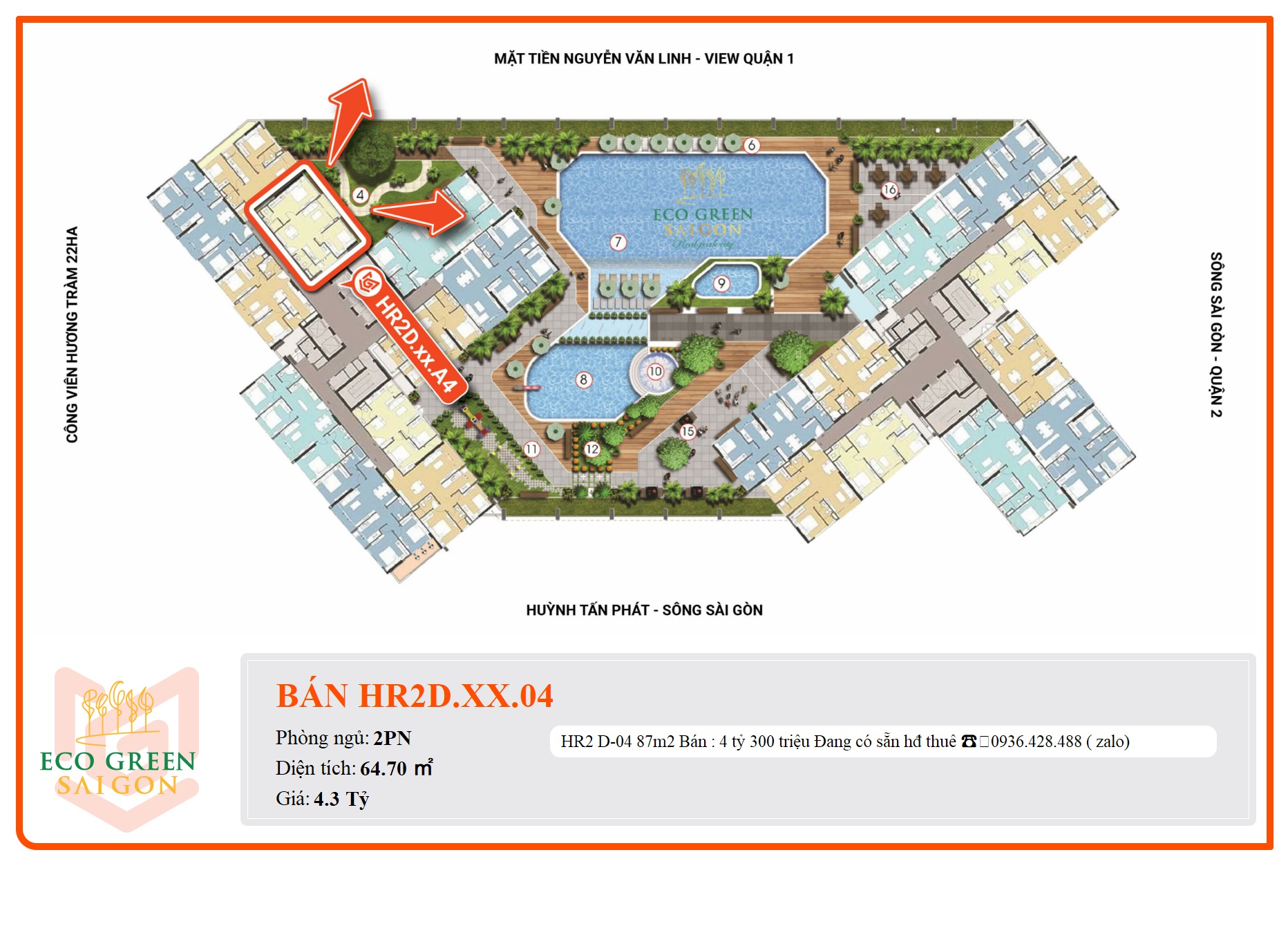 - Quy mô: 14.36 ha gồm 7 tháp căn hộ cao 36 tầng