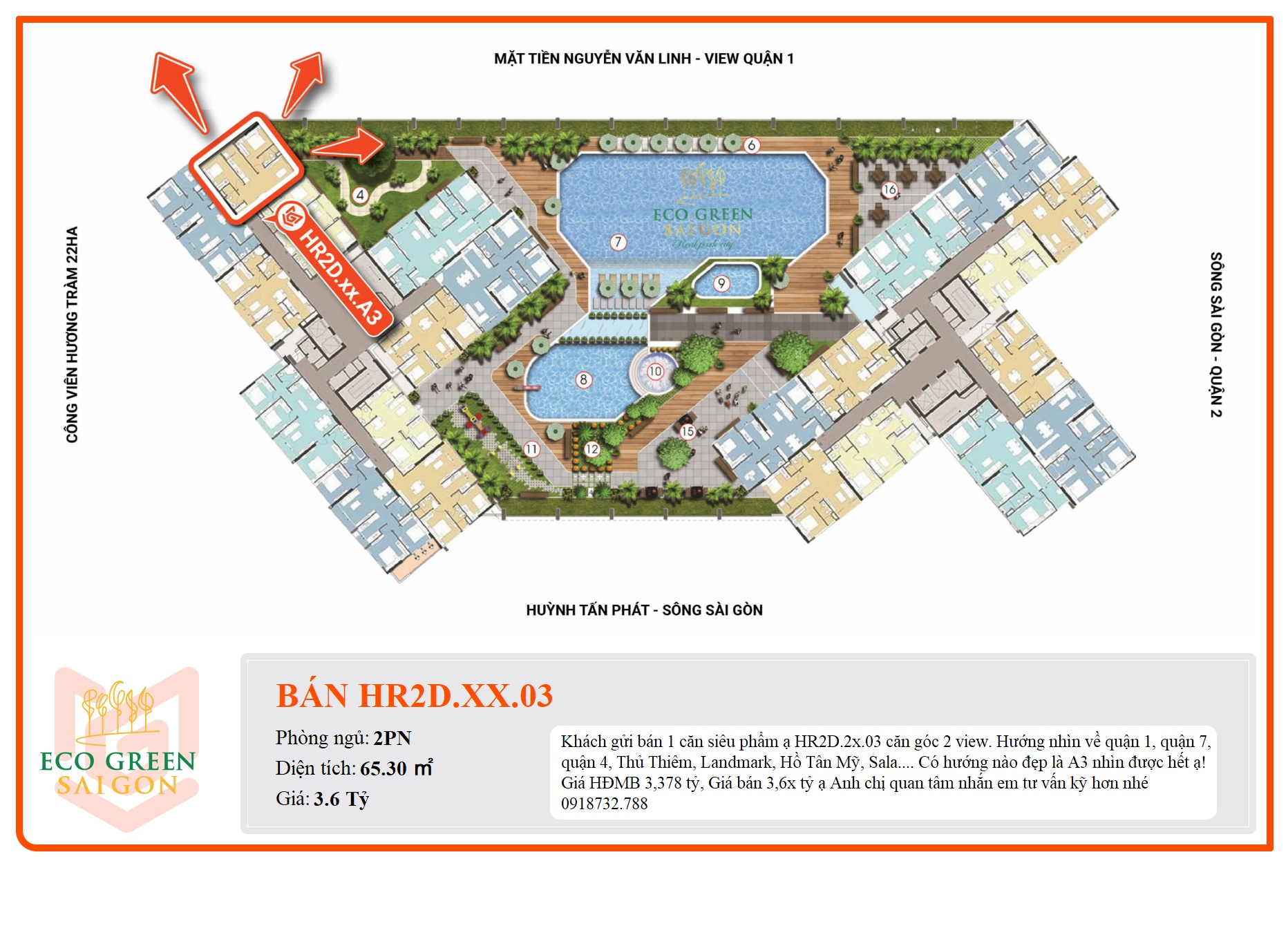 HR2D.2x.03 căn góc 2 view. Hướng nhìn về quận 1, quận 7, quận 4, Thủ Thiêm, Landmark, Hồ Tân Mỹ, Sala.... Có hướng nào đẹp là A3 nhìn được hết ạ!