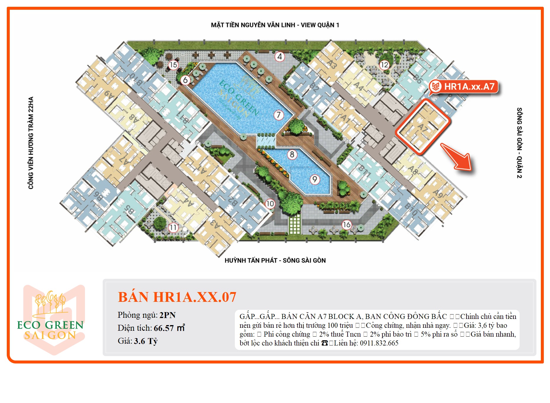 - Quy mô: 14.36 ha gồm 7 tháp căn hộ cao 36 tầng