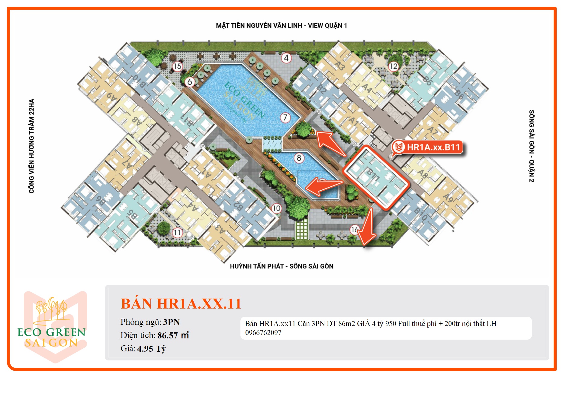 - Quy mô: 14.36 ha gồm 7 tháp căn hộ cao 36 tầng