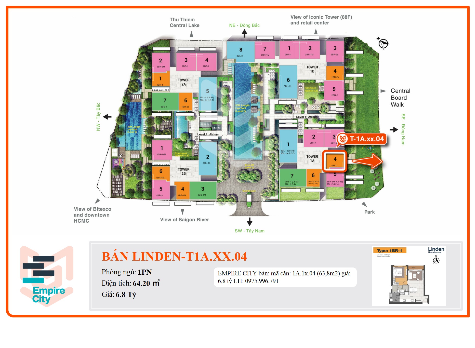 - Trong giai đoạn 1 & 2, giá bán căn hộ Empire City đầu 2016 ở 2 block MU7 – Tilia Residences (2016) & MU4 – Linden Residences (2017) từ 2800$.