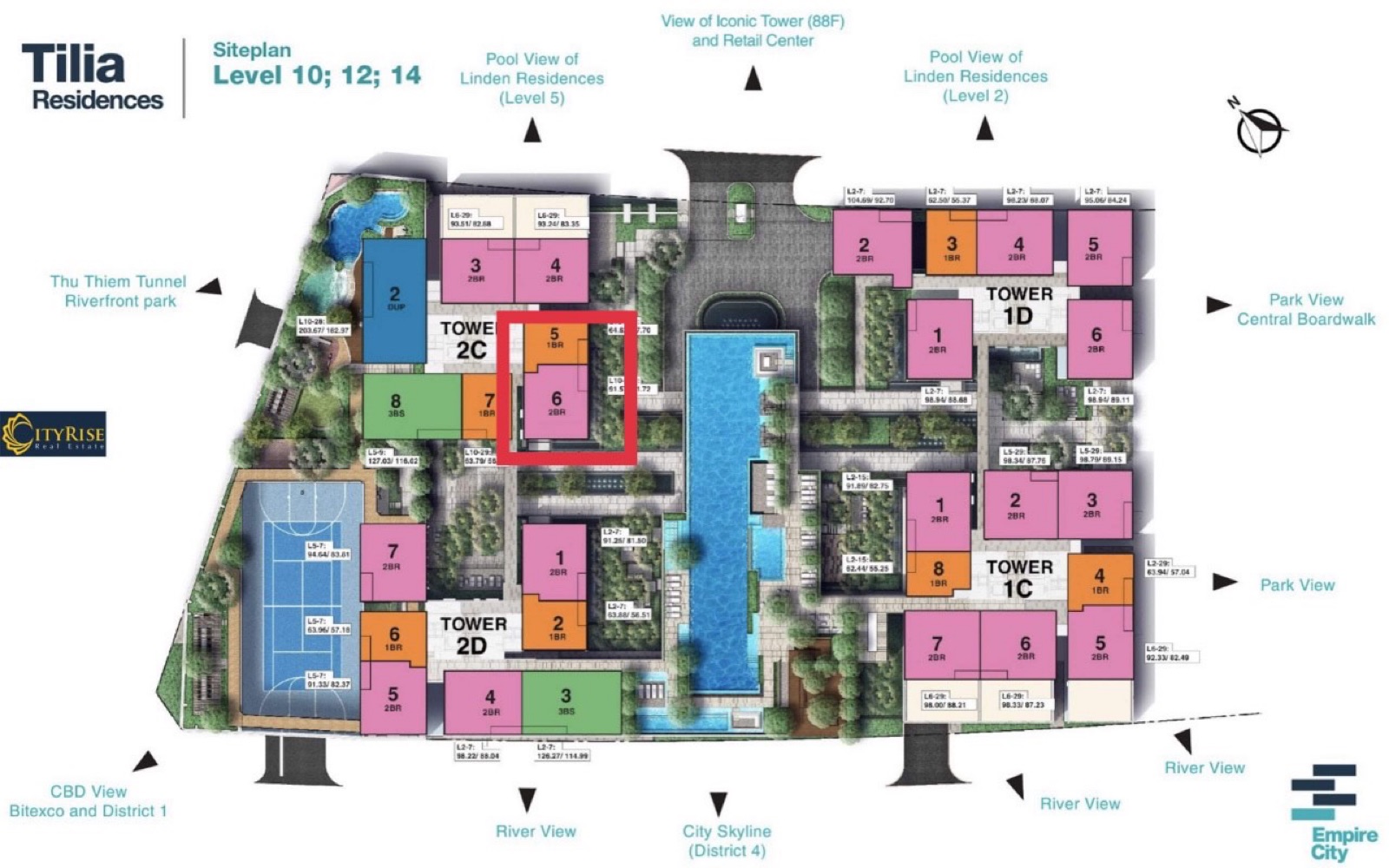 - Trong giai đoạn 1 & 2, giá bán căn hộ Empire City đầu 2016 ở 2 block MU7 – Tilia Residences (2016) & MU4 – Linden Residences (2017) từ 2800$.