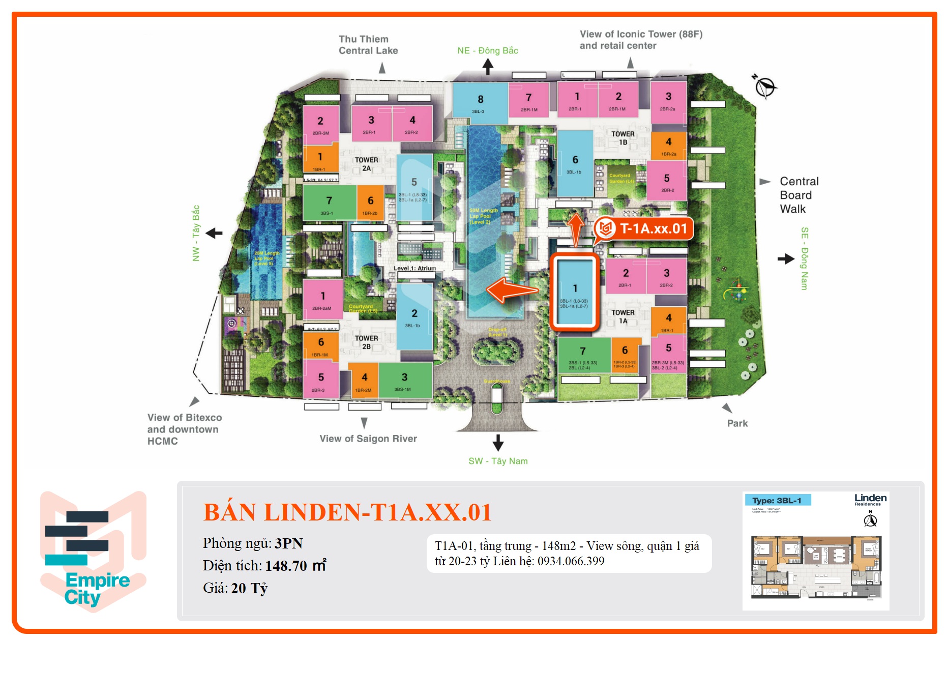 T1A-01, tầng trung - 148m2 - View sông, quận 1 giá từ 20-23 tỷ