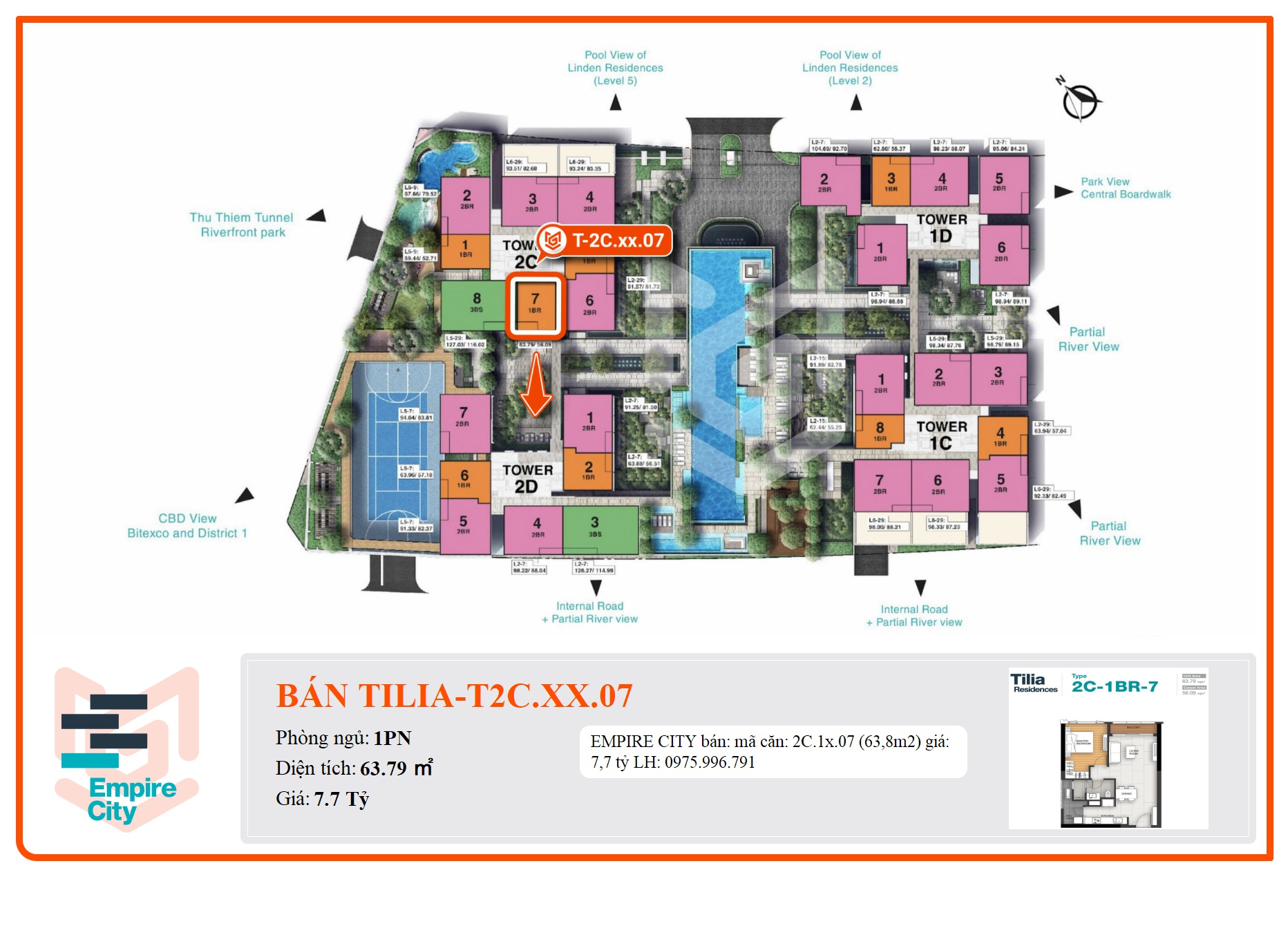 - Trong giai đoạn 1 & 2, giá bán căn hộ Empire City đầu 2016 ở 2 block MU7 – Tilia Residences (2016) & MU4 – Linden Residences (2017) từ 2800$.