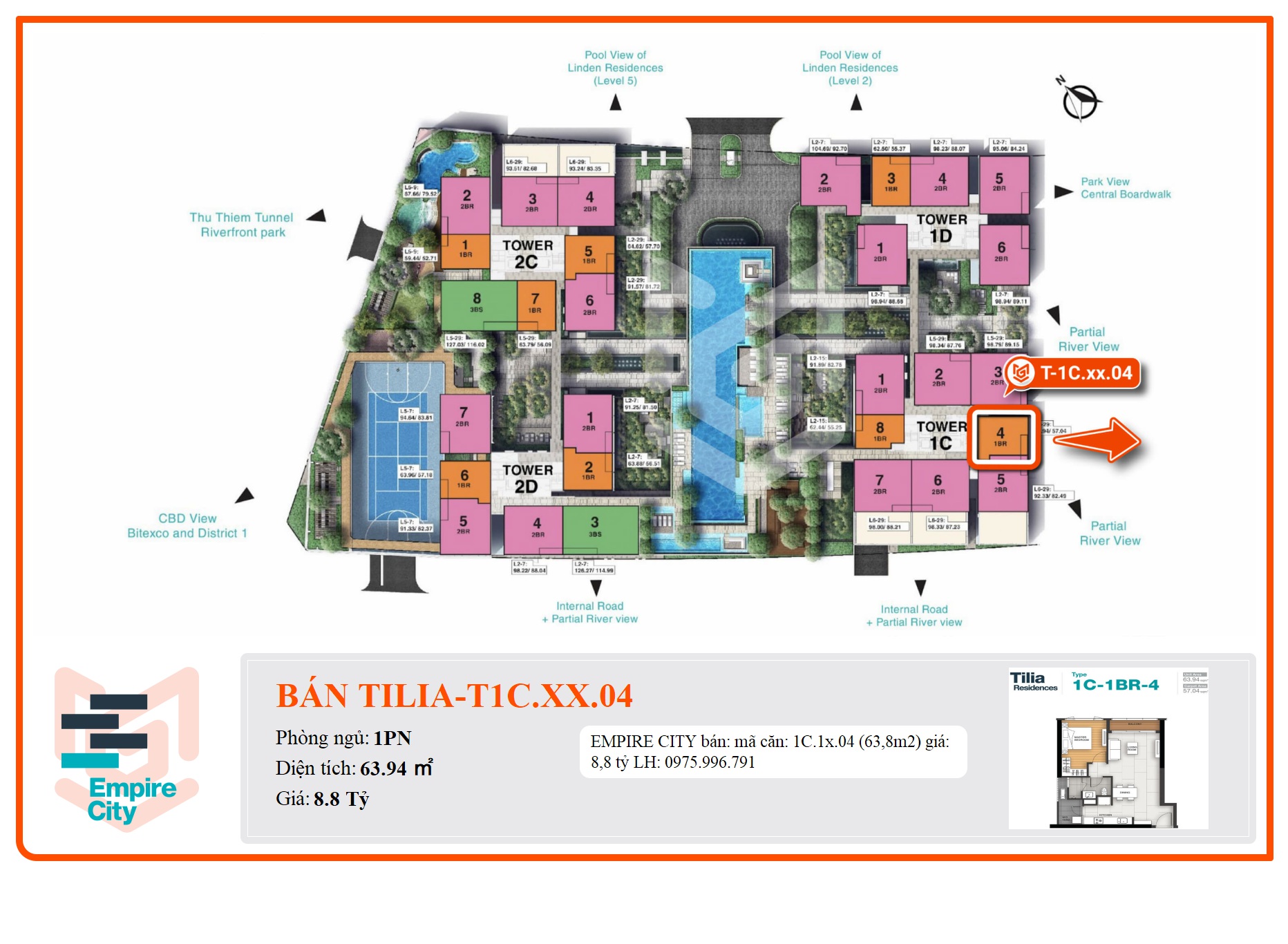 - Trong giai đoạn 1 & 2, giá bán căn hộ Empire City đầu 2016 ở 2 block MU7 – Tilia Residences (2016) & MU4 – Linden Residences (2017) từ 2800$.