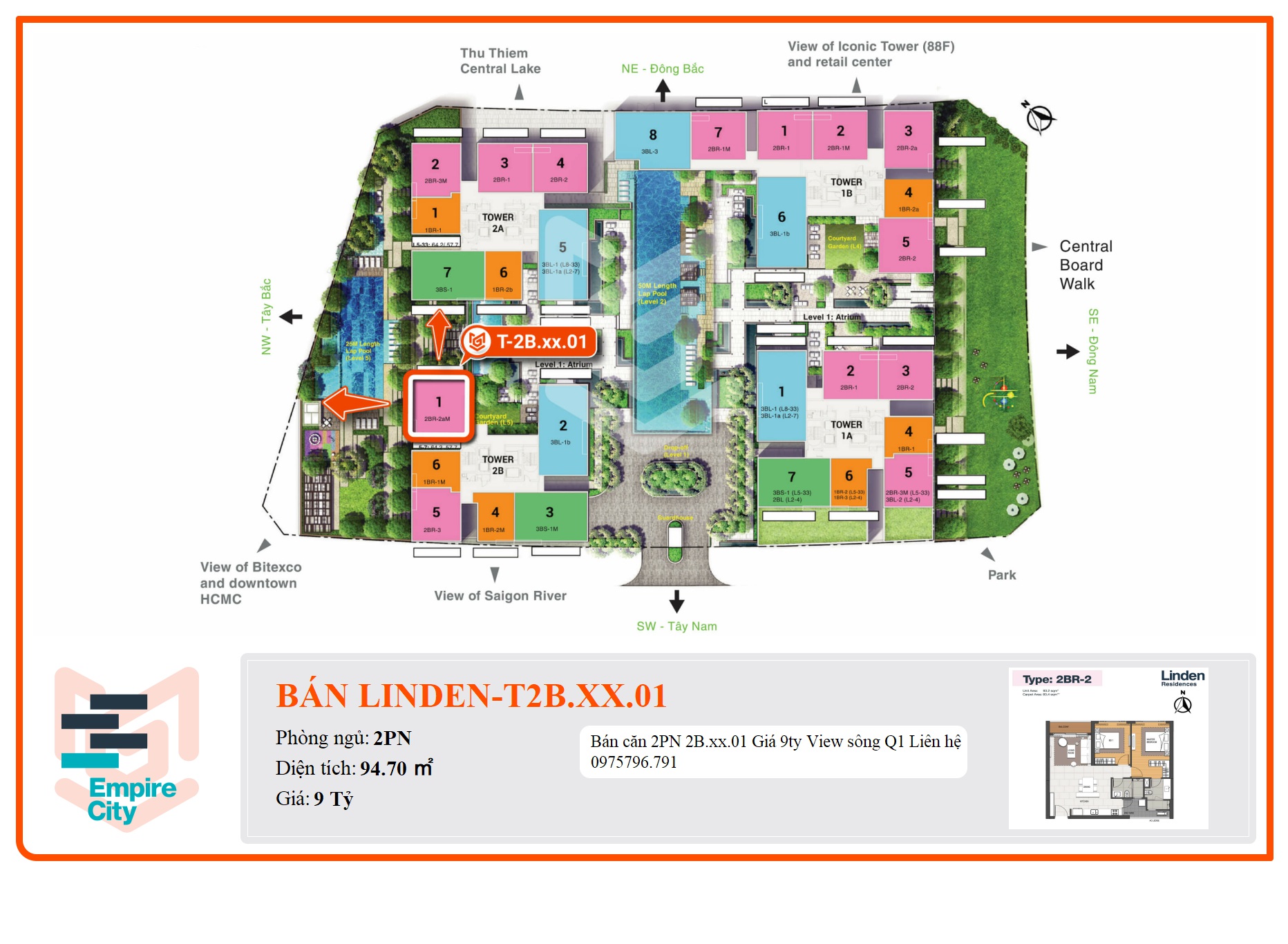 - Vị trí: Dọc đường Mai Chí Thọ (Đại Lộ Đông Tây) tại Khu chức năng số 2 (2B) phía Nam khu lõi trung tâm khu đô thị Thủ Thiêm - quận 2 - TP. HCM, ven sông Sài Gòn.