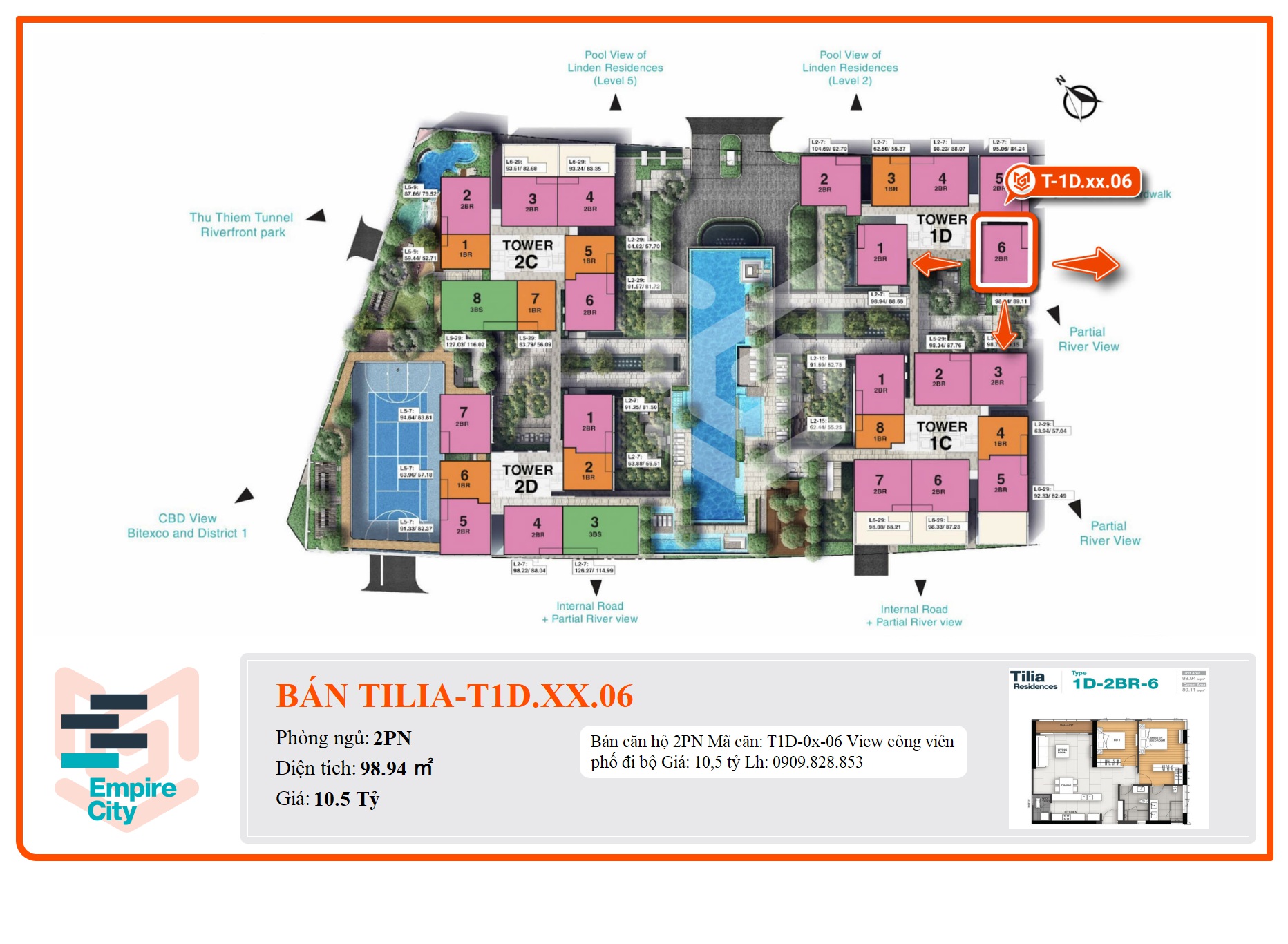 - Trong giai đoạn 1 & 2, giá bán căn hộ Empire City đầu 2016 ở 2 block MU7 – Tilia Residences (2016) & MU4 – Linden Residences (2017) từ 2800$.