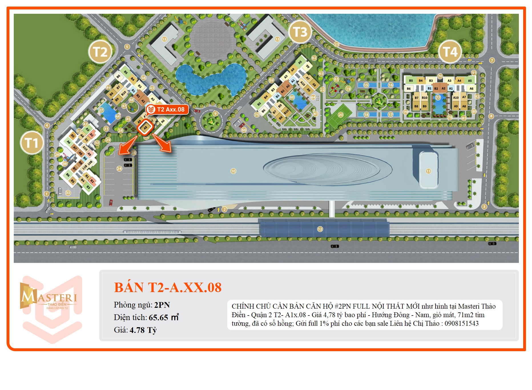 Masteri Thảo Điền là sản phẩm căn hộ cao cấp của tập đoàn Masterise Homes (tiền thân là Thảo Điền Investment). Cách Xa Lộ Hà Nội chỉ vài bước chân, phía sau chỉ 200m là dòng Sông Saigon. Đây thực sự là không gian thiên nhiên trong lành để bạn và gia đình hưởng thụ trọn vẹn hương vị cuộc sống. Ngoài ra, dự án cũng kết nối trực tiếp với ga An Phú (ga số 7), tuyến tàu điện Metro đô thị số 1 Bến Thành – Suối Tiên, đặc biệt bạn chỉ mất 7 phút vào trung tâm Quận 1 và các quận lân cận.