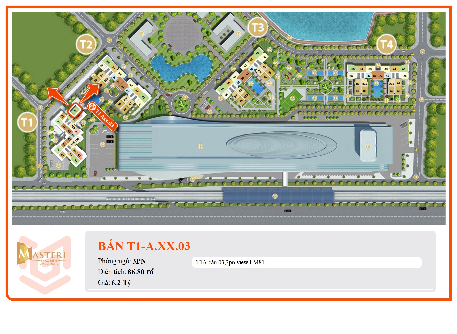 Masteri Thảo Điền là sản phẩm căn hộ cao cấp của tập đoàn Masterise Homes (tiền thân là Thảo Điền Investment). Cách Xa Lộ Hà Nội chỉ vài bước chân, phía sau chỉ 200m là dòng Sông Saigon. Đây thực sự là không gian thiên nhiên trong lành để bạn và gia đình hưởng thụ trọn vẹn hương vị cuộc sống. Ngoài ra, dự án cũng kết nối trực tiếp với ga An Phú (ga số 7), tuyến tàu điện Metro đô thị số 1 Bến Thành – Suối Tiên, đặc biệt bạn chỉ mất 7 phút vào trung tâm Quận 1 và các quận lân cận.