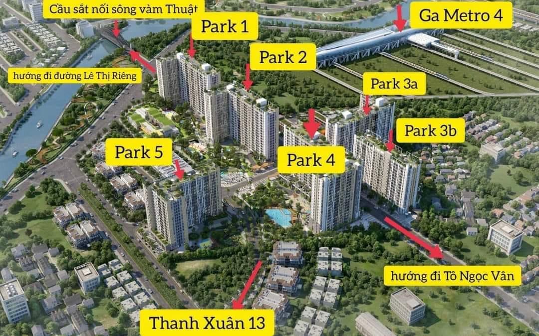 - Quy mô: 5 block với tên gọi từng tháp: Park 1 – Park 2 -Park 3 (Park 3A & Park 3B) – Park 4 – Park 5 & 36 căn nhà phố thương mại Quận 12