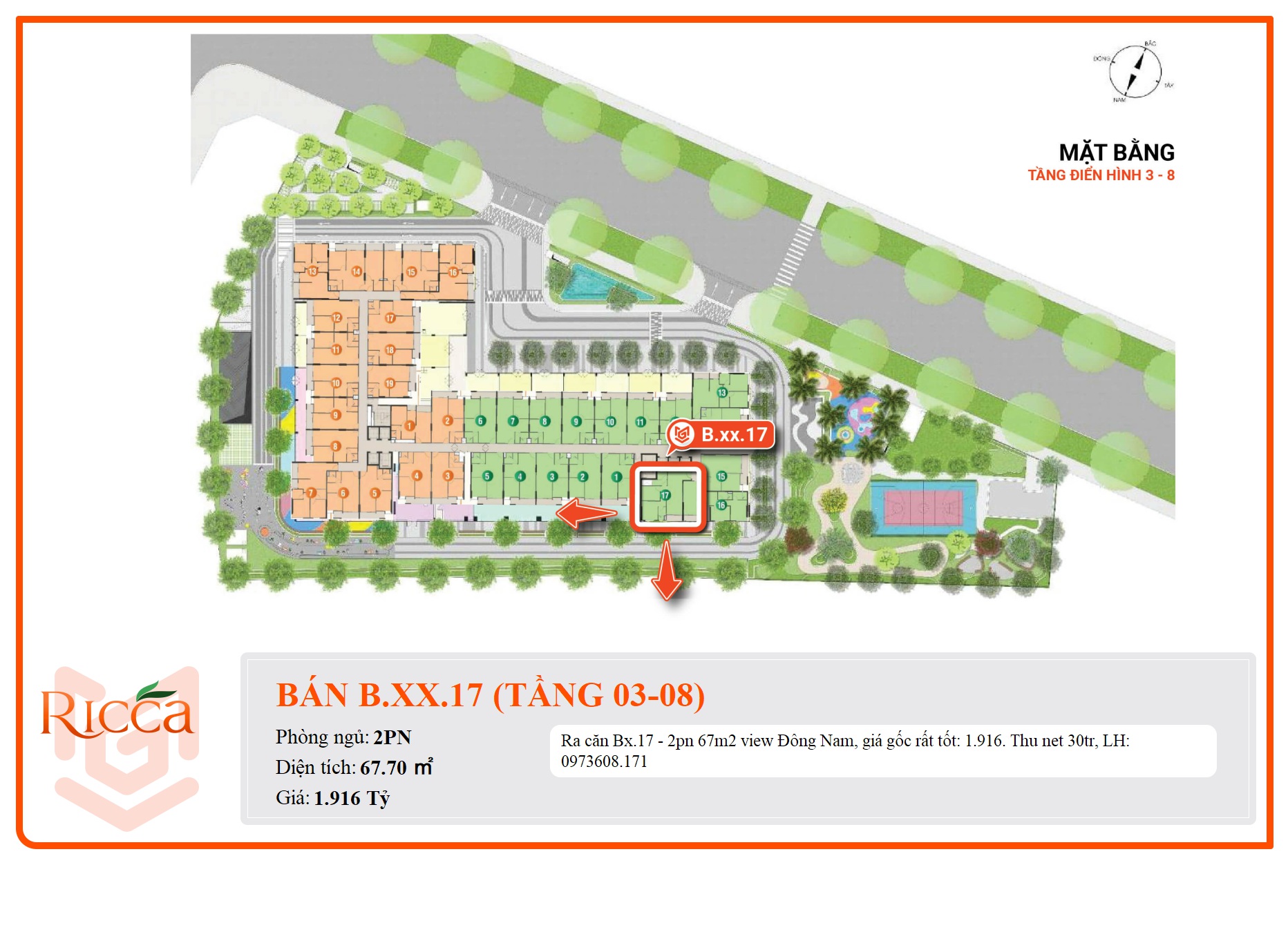 Ra căn Bx.17 - 2pn 67m2 view Đông Nam, giá gốc rất tốt: 1.916.